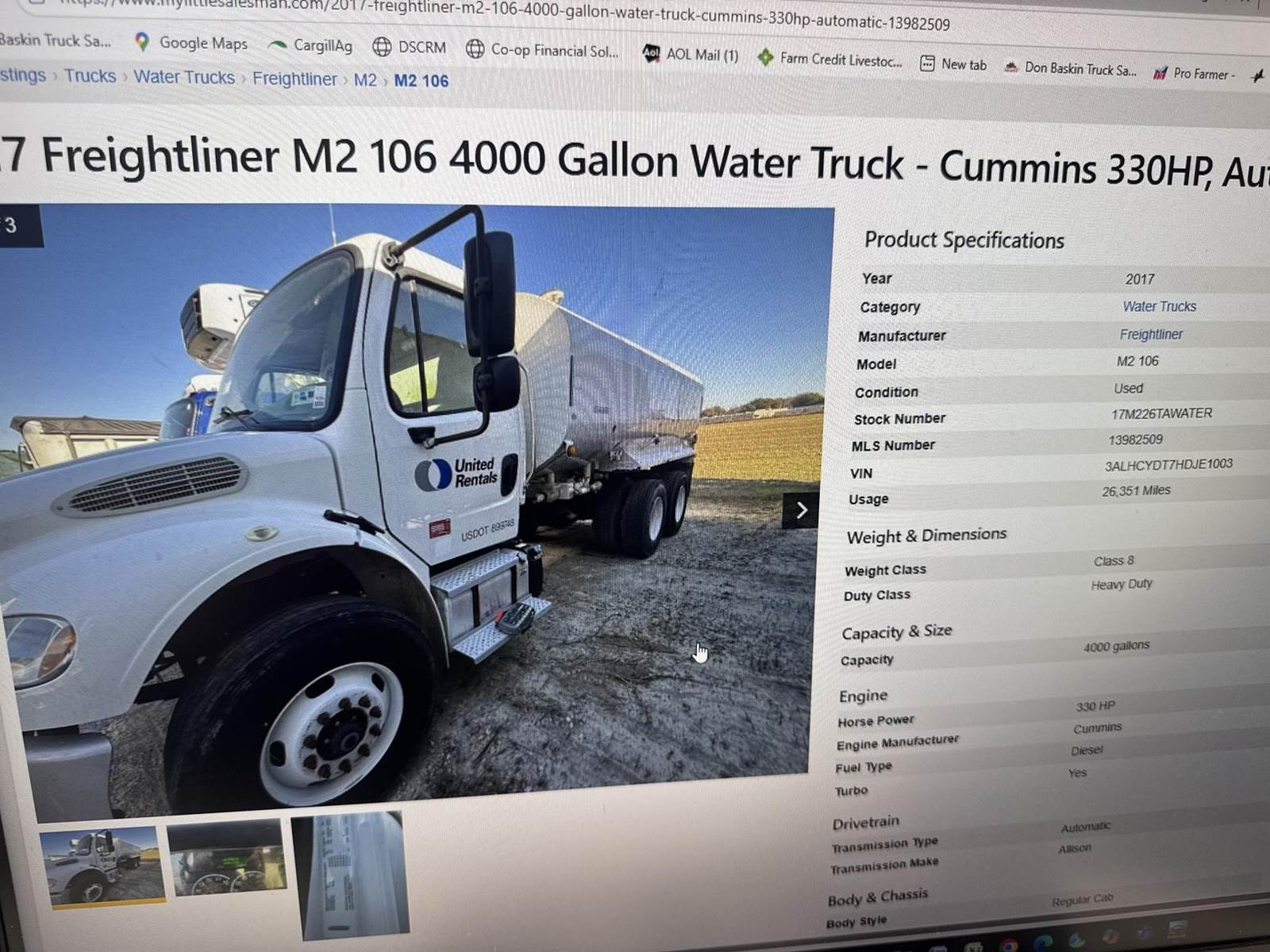 GOOD TRUCK, RUNS EXCELLENT, AIR BRAKES, NICE AGM TANK, DIFFERENTIAL LOCK, PTO/PUMP, SIDE/ REAR SPRAYERS, HOSE REEL!,