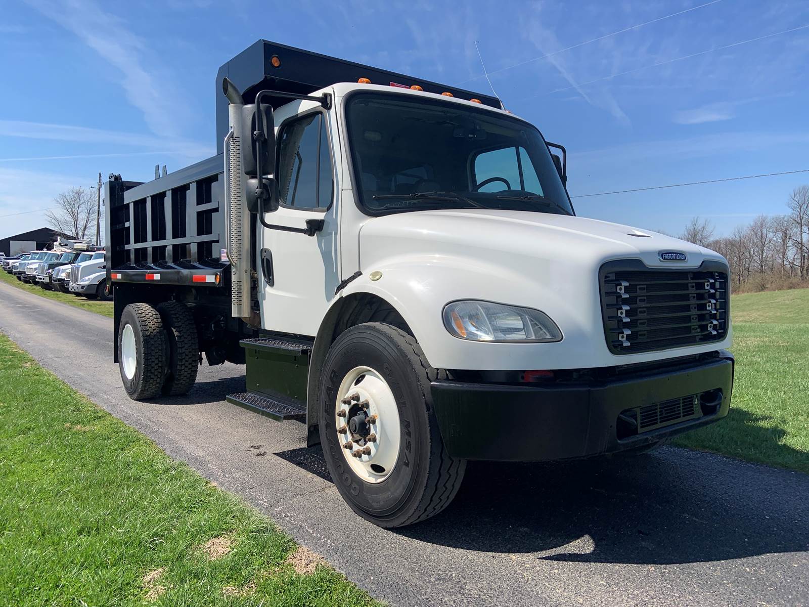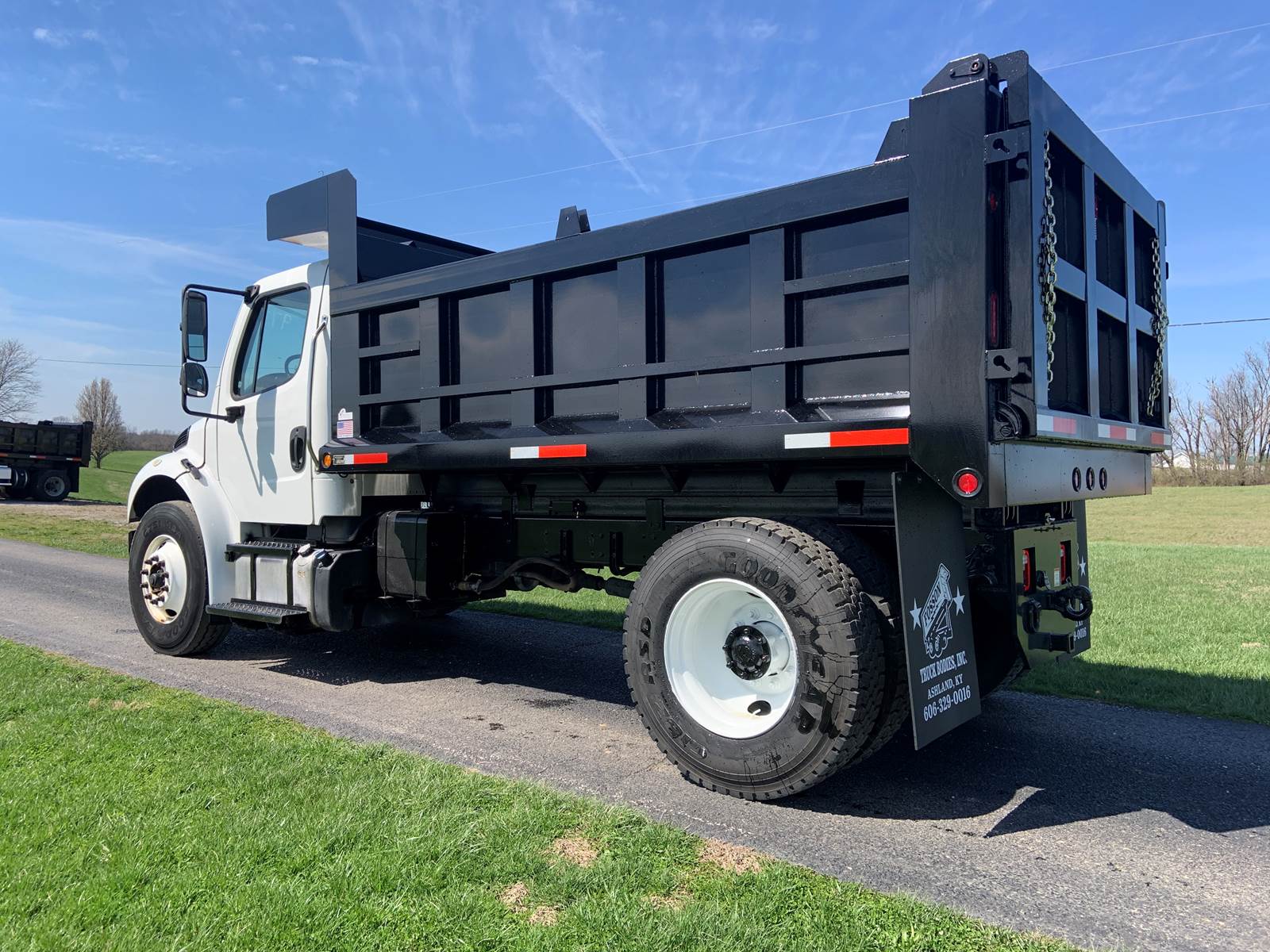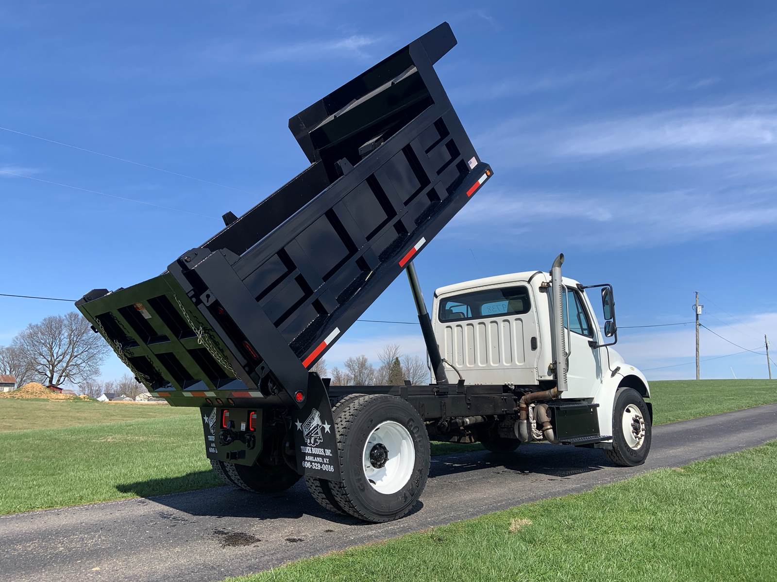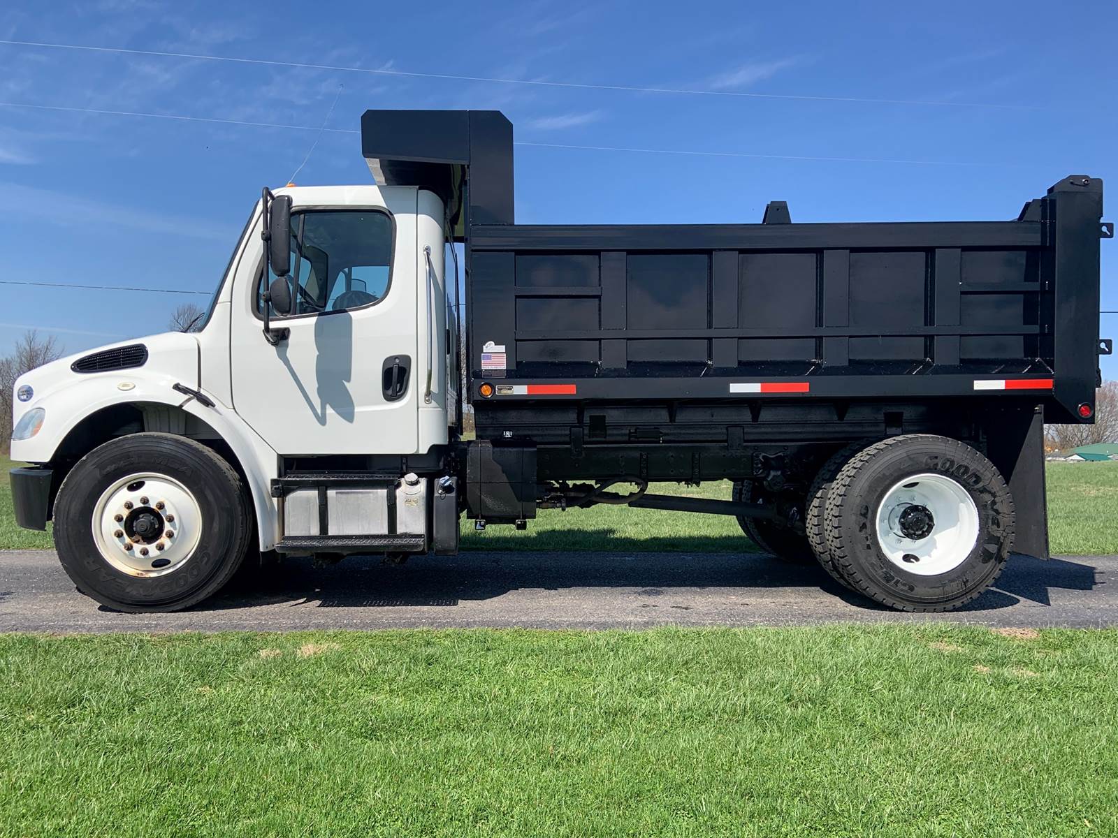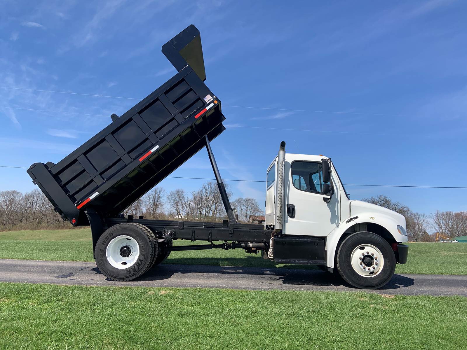 2017 Freightliner M2 106, New 12 Foot Dump Body with Telescopic Hoist, 36" Sides with 42" Air Operated Tailgate, Cummins ISB 6.7 Liter Diesel Engine, 280 HP, Allison 3500 RDS Automatic 6-Speed Transmission, Odometer - 34,365 Miles, Hr Meter - 4,160 Hours, GVWR - 33,000 Lbs, Front Axle - 12,000 Lbs, Rear Axle - 21,000 Lbs, Wheelbase - 182 Inches, Cab to Axle - 112 Inches, Tires - 11R22.5, Air Brakes, Power Differential Lock, Exhaust Brake, Air to Rear, Electric to Rear, Air Ride Driver's Seat, Air Ride Cab, Cruise Control, Tilt Steering Wheel, Air Conditioning, Aluminum Fuel Tank, GVWR 33,000 Lbs, Mileage 34,023 Miles