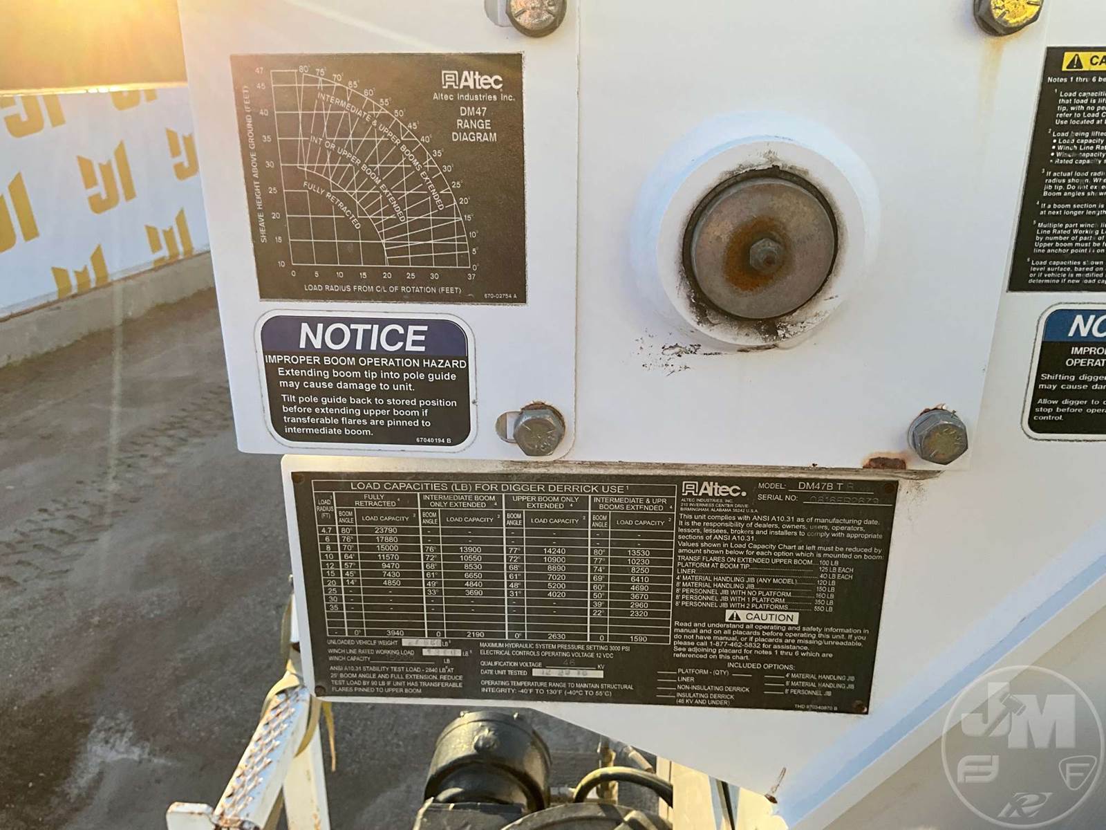 ALTEC S/A DIGGER DERRICK TRUCK, CUMMINS, 6.7, 250 HP., ALLISON, AUTOMATIC, 4X4, 33000 GVWR, 191" " WB, 2 SECTION BOOM, POLE GRABS, WINCH, 18" " AUGER, STEEL DISC WHEELS, 11R22.5 TIRES, HOUR METER READS: 5144, ODOMETER READS: 63769