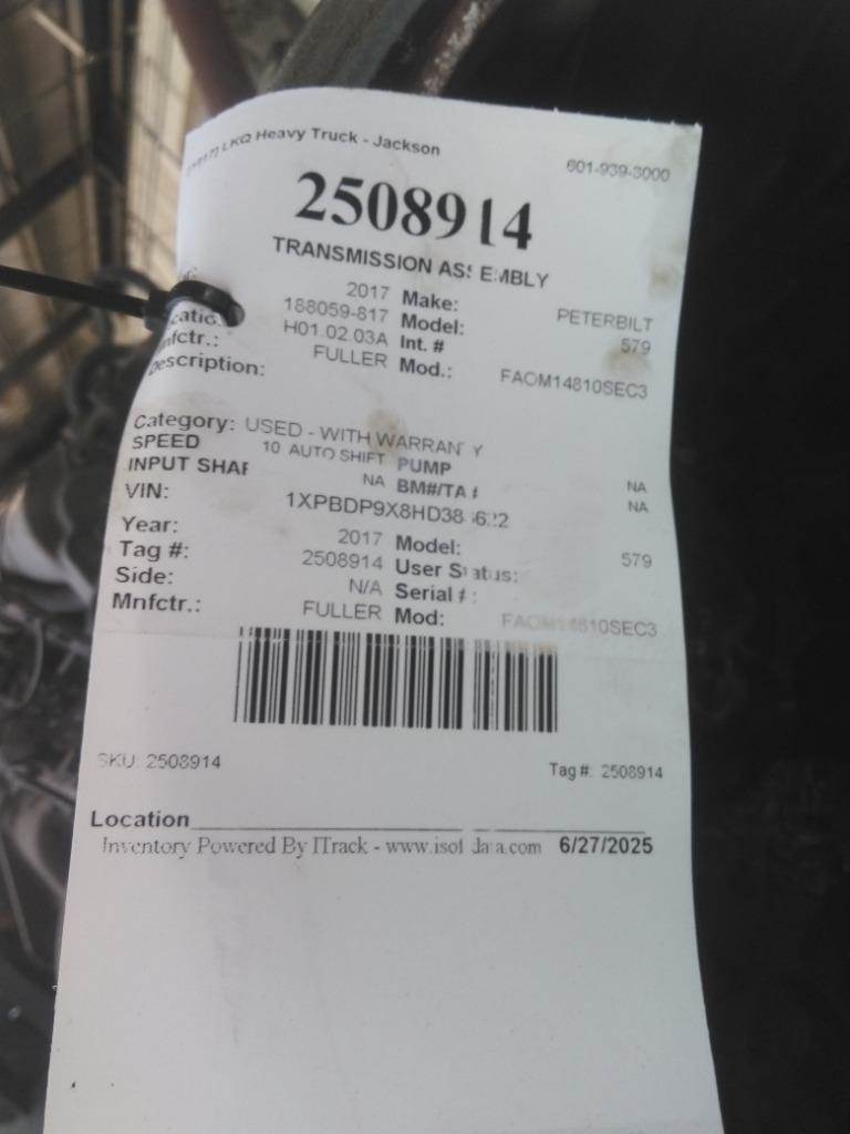 2017 Meritor-Rockwell MD2014XRTBD Cutoff for a Peterbilt 579