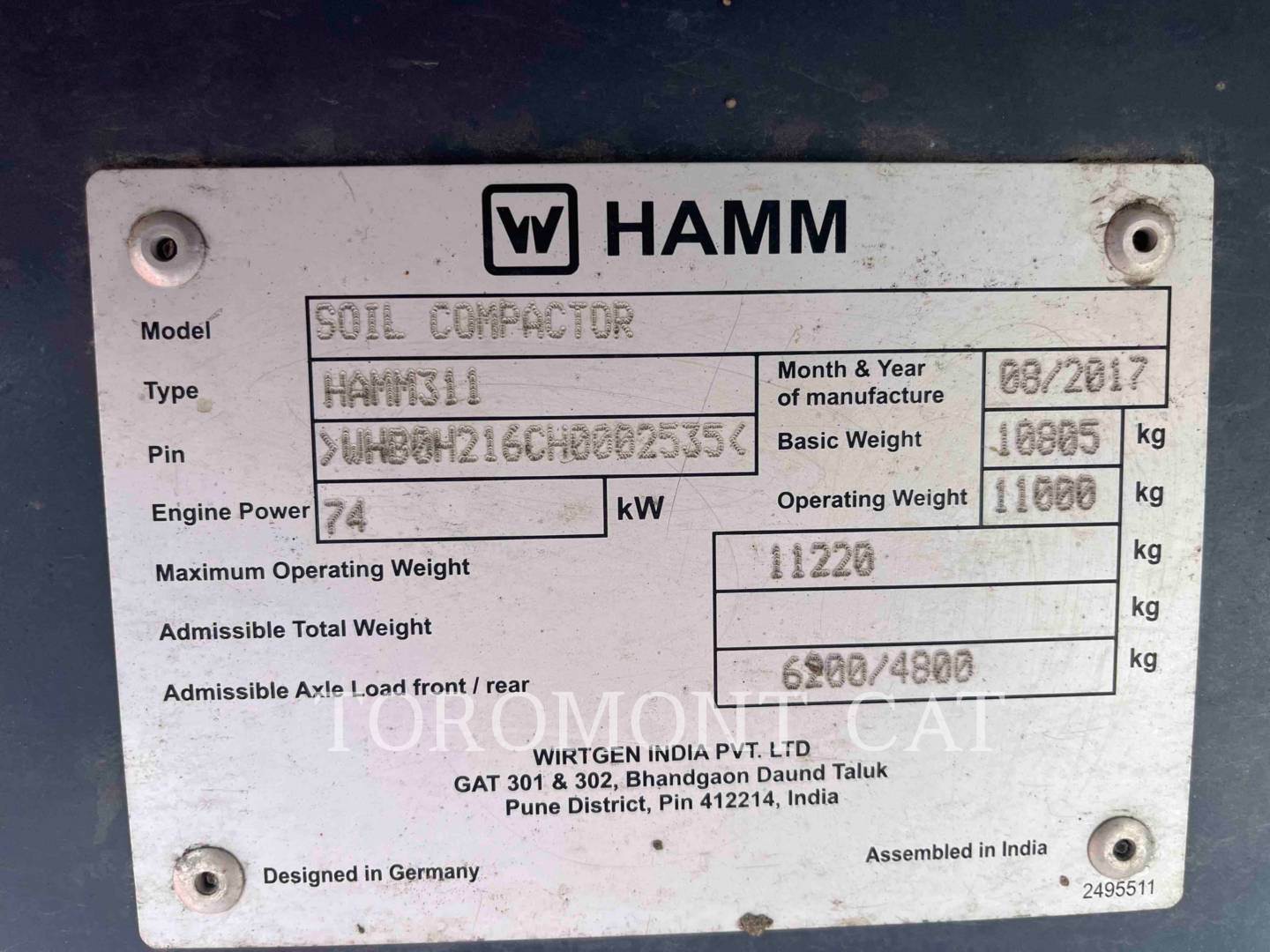 2017 Hamm 311 Smooth Drum Roller Compactor