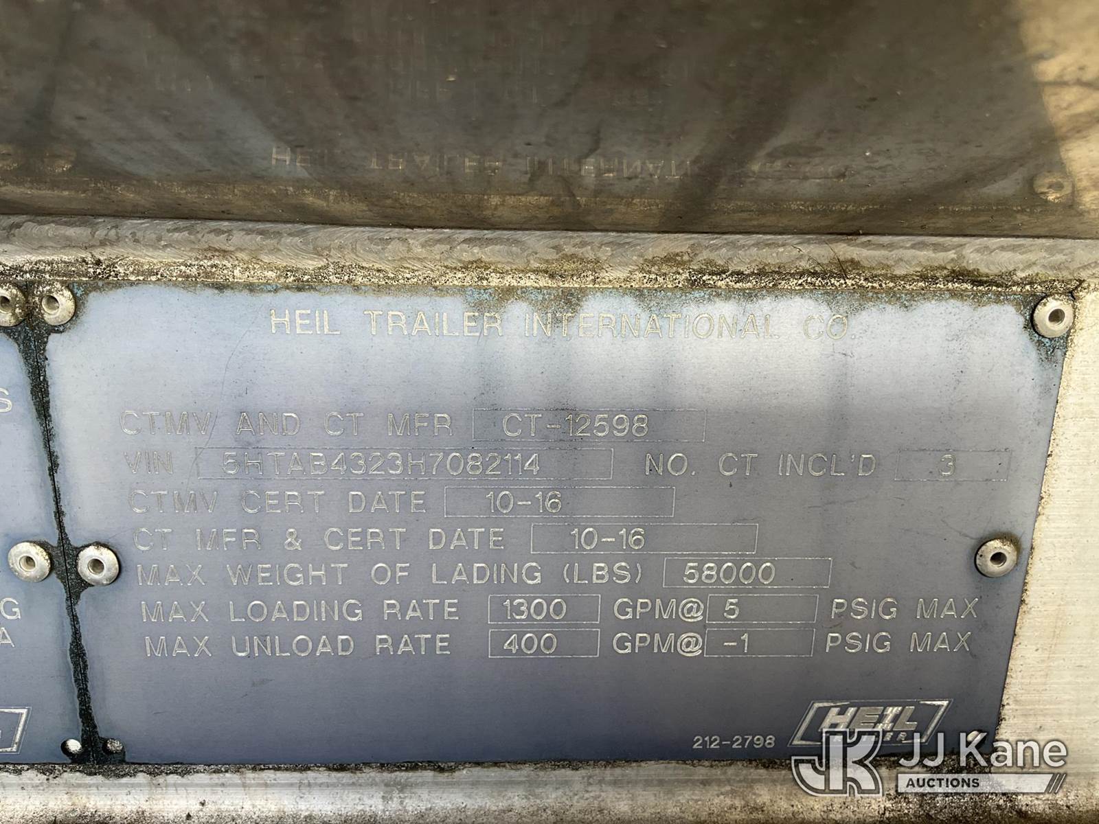 2017 Heil T/A Tank Trailer, with 8300 gal tank, Duke Unit This is a Titled Item NOTE: This unit is being sold AS IS/WHERE IS via Timed Auction and is located in Ocala, FL. Inspection & preview days for this unit are by appointment only; please contact us at contact@jjkane.com or 84-Go-JJKane for more details. For more information & removal arrangements please contact Mike Lessard @ (352) 629-6677. (Buyer is responsible for removal. Assistance by consignor or JJ Kane Auctions is not assured.)