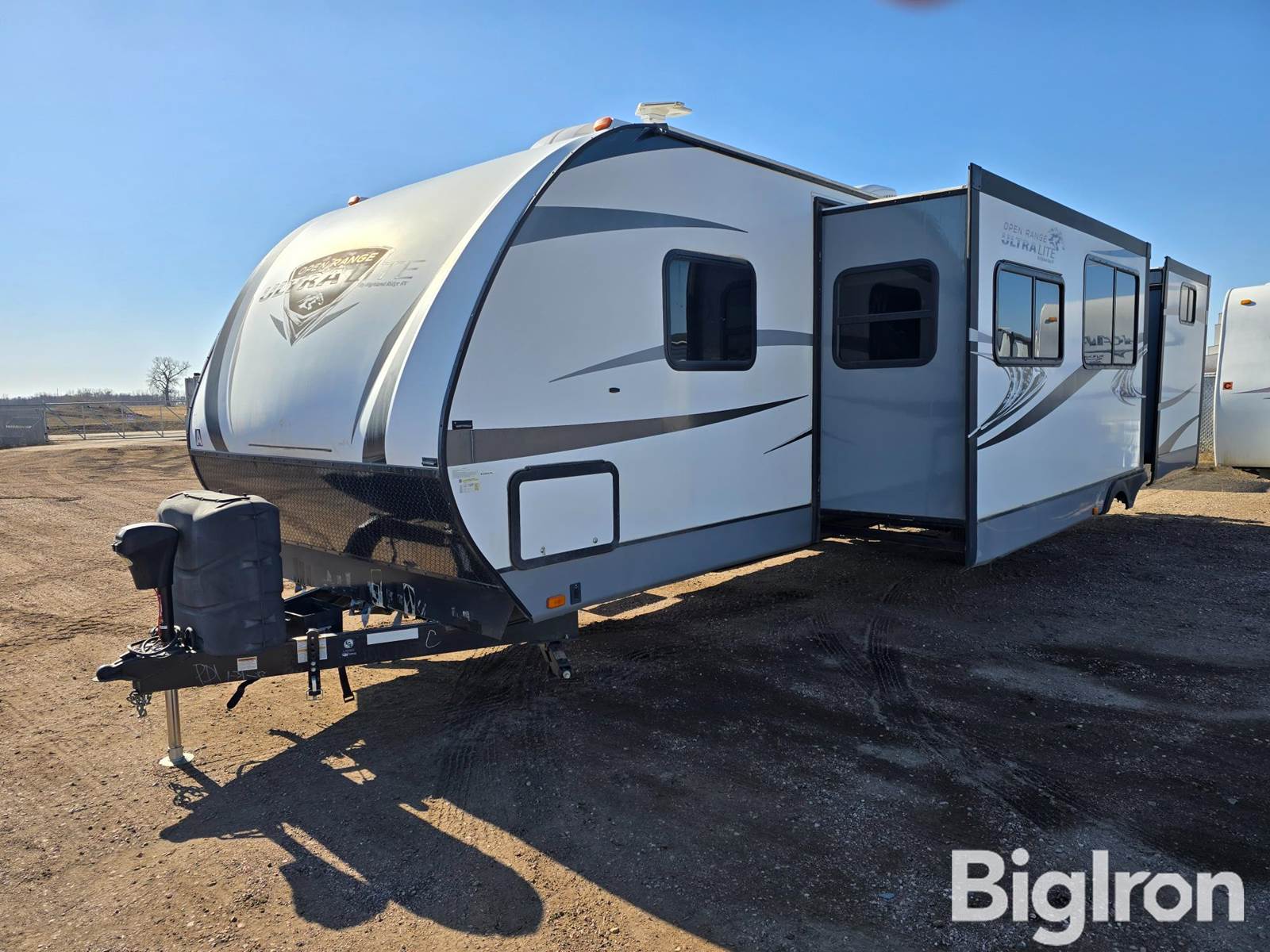 2017 Highland Ridge Open Range 3110BH T/A Travel Trailer, 8,995 Gross Vehicle Wt. Rating (GVWR), 4,300 Lb. Rear Axles, 4,300 Lb. Front Axles, Spring Suspension, Electric Brakes, 205/75R15 Front Tires, 205/75R15 Rear Tires, Aluminum Wheels, Ball Hitch, 2 5/16 Ball, 35 Length, 8 Width, 11' Height, 3,055 Weight, Heater, AC, Radio, 2 Doors, 2 Slide-outs, Fridge/Freezer, Microwave, 10 Person Sleeping capacity, Shower, Toilet, Manual Jacks, Outdoor Kitchen, 2 Burner Cooktop, Fridge, Sink, Powered Jack, Powered Awning, 30# LP Tanks, Rear Bunks W/ Storage, Dinette in Rear Bedroom, Vinyl Flooring Throughout, Vinyl is Loose in Areas, TV, Fireplace, Stainless Steel Appliances, Skylights, Manuals Included, No Batteries, See Photos for Overall Condition, VIN: 58TTU3522H3028790