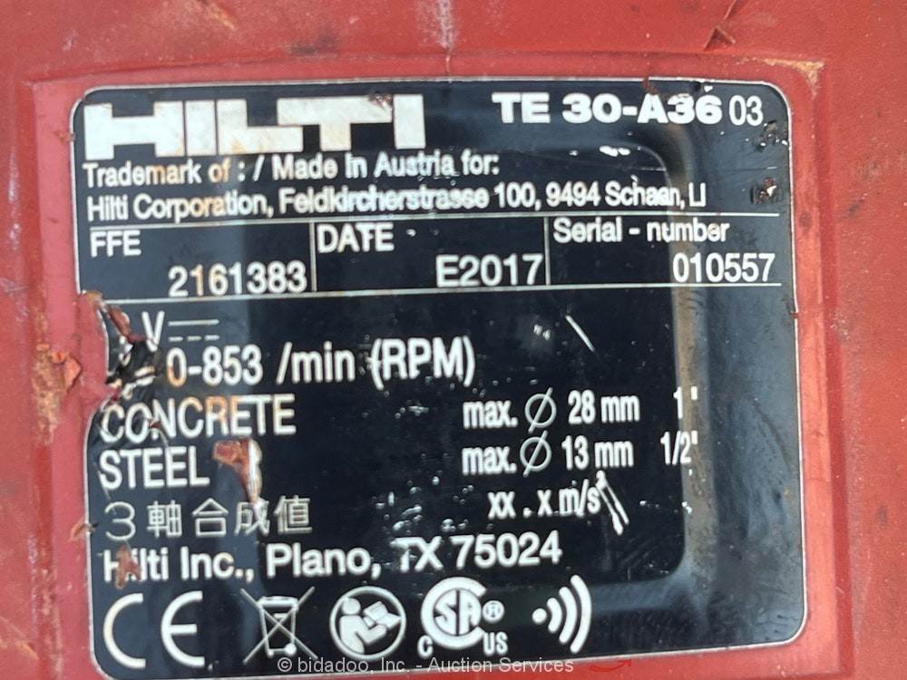 2017 Hilti TE 30-A36 Battery Powered Combo Rotary Hammer SDS-Plus bidadoo