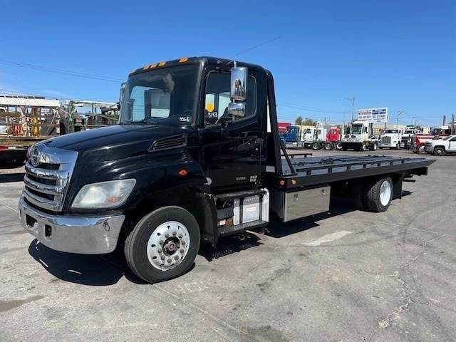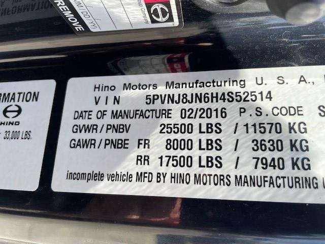 2017 Hino 258 Single-Axle Roll-Back Tow Truck, Hino 7.7L @ 220 H.P., Exhaust Brake, Allison 5-Speed Automatic O/D Transmission, 4.11 Ratio, 212" W.B., Spring-Suspension, 25,500# G.V.W.R., NON-CDL, Air-Brakes, 8K Front-Axle, 17.5K Rear-Axle, 245/70R-19.5 Tires, Aluminum Front Wheels, Aluminum Front Wheels / Steel Rear Wheels, Horizontal Exhaust, Aluminum 50 Gallon Fuel Tank, D.P.F. Equipped, DEF Required, (1) Underbody Aluminum Tool Box, Vulcan 21'6" x 102" Steel Bed, 12K Capacity, 4K Capacity Hydraulic Stinger, 10K Capacity Tow Rating, Dual Controls, Ramsey 8K Capacity Single-Pull Winch, Headache Rack, Stake Pockets, P/S, A/C, C/C, Tilt-Telescoping Steering Column, Dual Power Windows, Dual 4-Way Power Mirrors, Mirror Heat, Fleet Maintained, Commercial Financing Available O.A.C., 456,363 Miles!