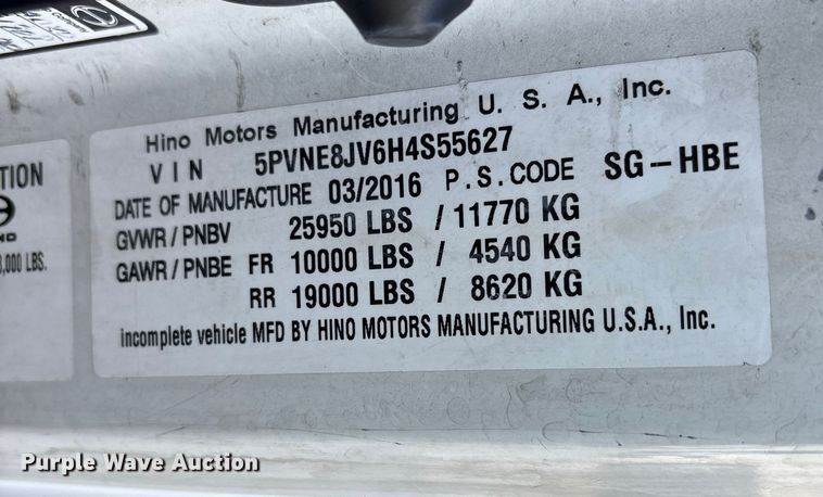 2017 Hino 268 box truck