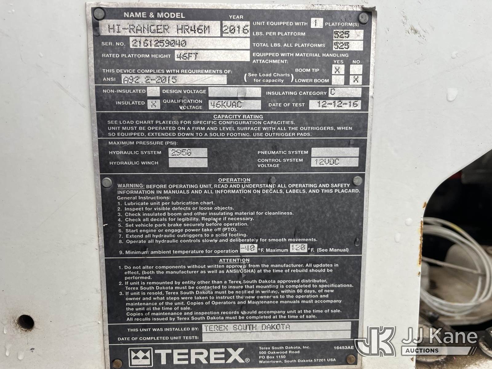 HiRanger HR46-M, 51 ft, Material Handling Bucket Truck s/n 2161259040, with single man bucket, rear mounted on 2017 International 7300 4x4 Extended-Cab Utility Truck, Cummins 6.7L diesel, Auto, A/C, (165,813 miles) (Runs, Moves & Upper Operates) This is a Titled Item NOTE: This unit is being sold AS IS/WHERE IS via Timed Auction and is located in Pelham, TN. For more information & removal arrangements please contact Dalton Childers @ 629-395-3117. (Missing manuals, See Auction Company for Manufacturers Information to obtain manuals) (Buyer is responsible for removal. Assistance by consignor or JJ Kane Auctions is not assured.)