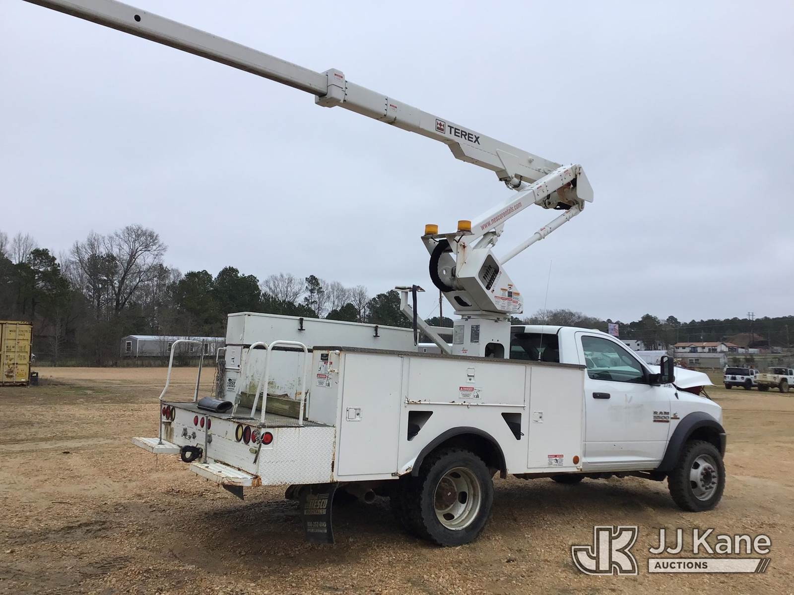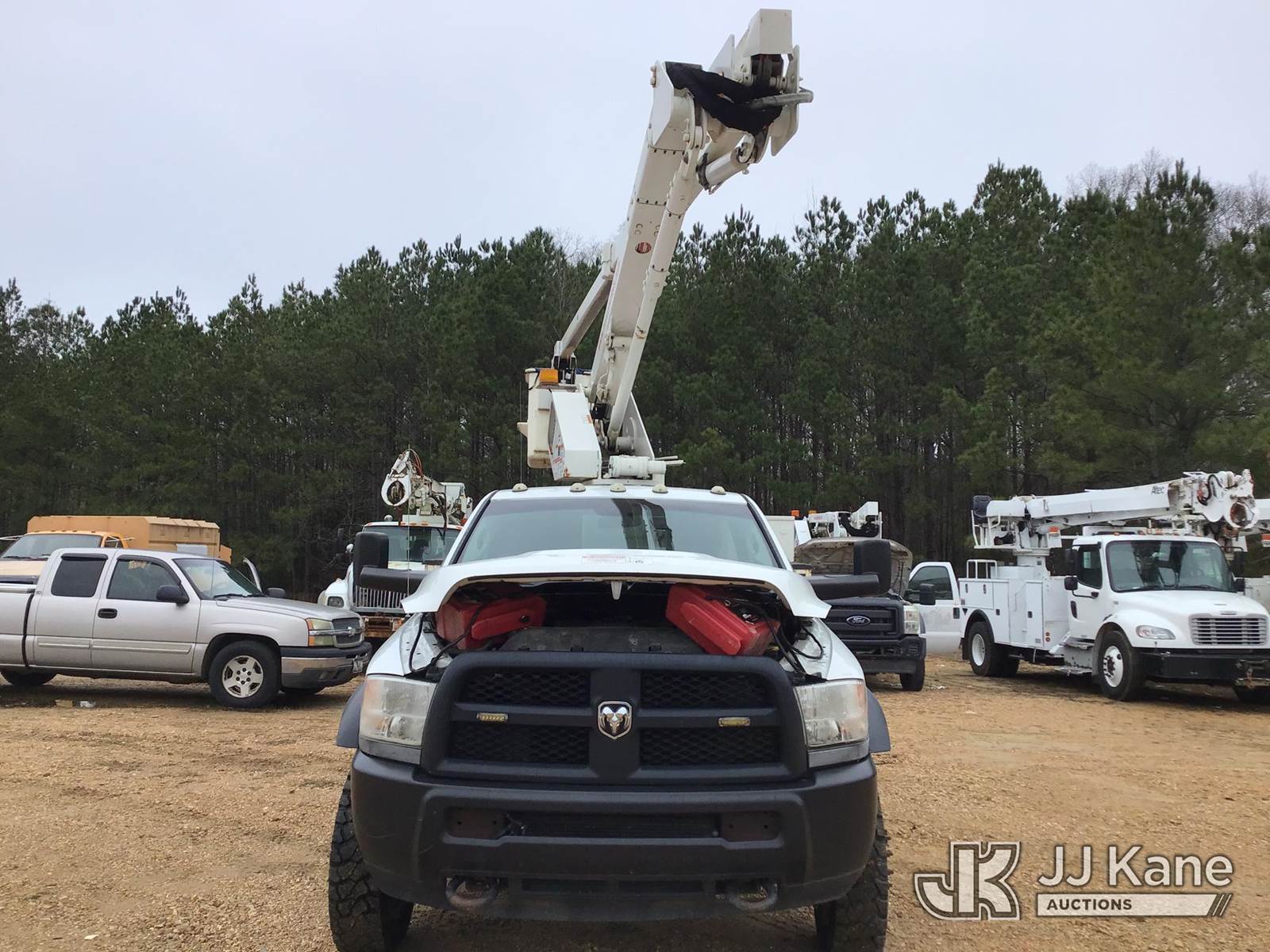 HiRanger LT38, 43 ft, Articulating & Telescopic Bucket Truck s/n 210074382(YEAR 2007), with single man bucket, mounted behind cab on 2017 RAM 5500 Service Truck, 6.7L diesel, 4wd, Auto, A/C, (102,432 miles) (REMOUNTED UPPER UNIT - YEAR MODEL 2007)(Jump To Start, Won’t Stay Running When Jump Box’s Removed, Power Steering In-Op, Brakes Hard To Stop, Runs, Moves, Engine Light On, Upper Operates, Bins Rusted Out, Some Bins Won’t Open, Manual Missing, Seat Torn,) (Reads 4,913 hours) This is a Titled Item NOTE: This unit is being sold AS IS/WHERE IS via Timed Auction and is located in Byram, MS. Inspection & preview days for this unit are the 2 business days prior to the first day of items closing for this auction, item is located at 6033 I-55 S / W Frontage Rd Byram, MS 39272 and hours of operations are 8a-4p. Pre-sale questions, please contact Todd Hales @ (659) 278-7786 (Missing manuals, See Auction Company for Manufacturers Information to obtain manuals) (Buyer is responsible for removal. Assistance by consignor or JJ Kane Auctions is not assured.)