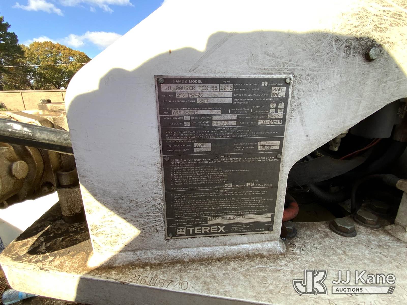 HiRanger TCX-55, 60 ft, Material Handling Bucket Truck s/n 2161157406, with two man bucket, rear mounted on 2017 Freightliner M2 106 T/A Utility Truck, 8.9L Auto, 6X4, diesel, A/C, with front winch, (107,996 miles) (AL Power Unit) (Runs, Moves & Upper Operates) (Rust Damage, Cracked Windshield, Minor Body Damage) This is a Titled Item NOTE: This unit is being sold AS IS/WHERE IS via Timed Auction and is located in Graysville, AL. For more information & removal arrangements please contact Dylan Evans @ 205-936-1094. Alabama Auctioneer Michael Whitebread - License # 5592 (Manuals provided in cab) (Buyer is responsible for removal. Assistance by consignor or JJ Kane Auctioneers is not assured.)