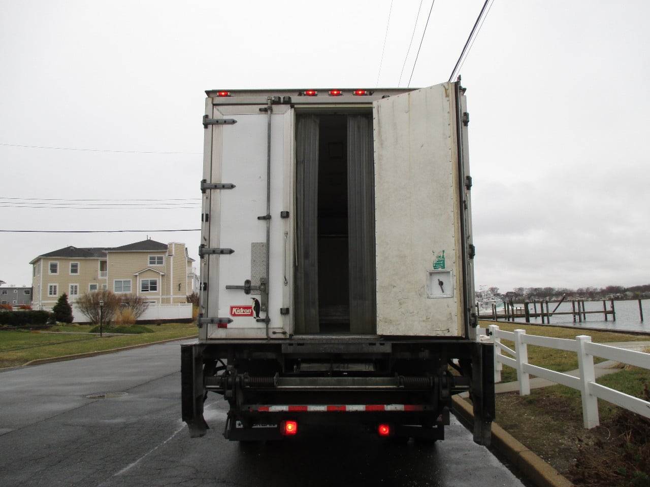 CUMMINS @ 280HP(170,335 MILES), ALLISON 2500 RDS AUTO TRANS, 12,000 + 23,000 LB AXLES, 33,000 GVW, A/B, 11R22.5 TIRES, 18'L X 90"H X 96"W KIDRON REEFER BODY W/ TRI FOLD DOORS, CURBSIDE DOOR, ALUMINUM FLOOR, TK 880R SELF CONTAINED UNIT W/ 5059 HRS, ELECTRIC STANDBY, 3000 LB GALVANIZED LIFT GATE, CAN BE DE-RATED TO NON CDL