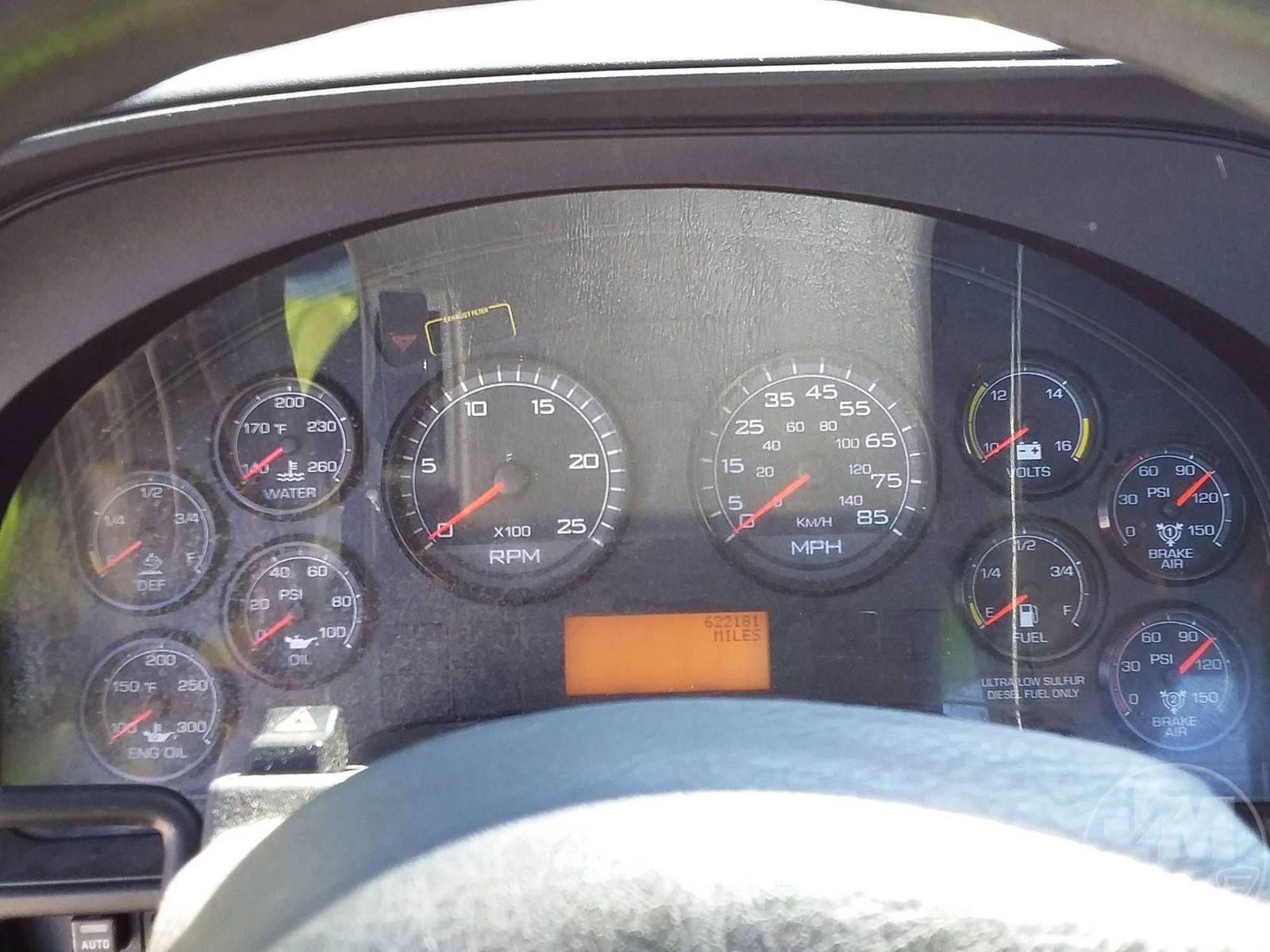 TANDEM AXLE DAY CAB TRUCK TRACTOR, INTERNATIONAL, NAVISTAR A410, 410 HP, EATON FULLER, 10 SPEED, AIR RIDE SUSPENSION, DISC, 175 " WB, C/A: 112", 12K FRONTS, 40K REARS, 52000 GVWR, AIR SLIDE FIFTH WHEEL, A/C, AIR DRIVERS SEAT, CRUISE CONTROL, ENGINE BRAKE, DUAL FUEL TANKS, STEEL DISC WHEELS, 295/75R22.5 STEER TIRES, 295/75R22.5 TIRES, HOUR METER READS: 12944, ODOMETER READS: 622177