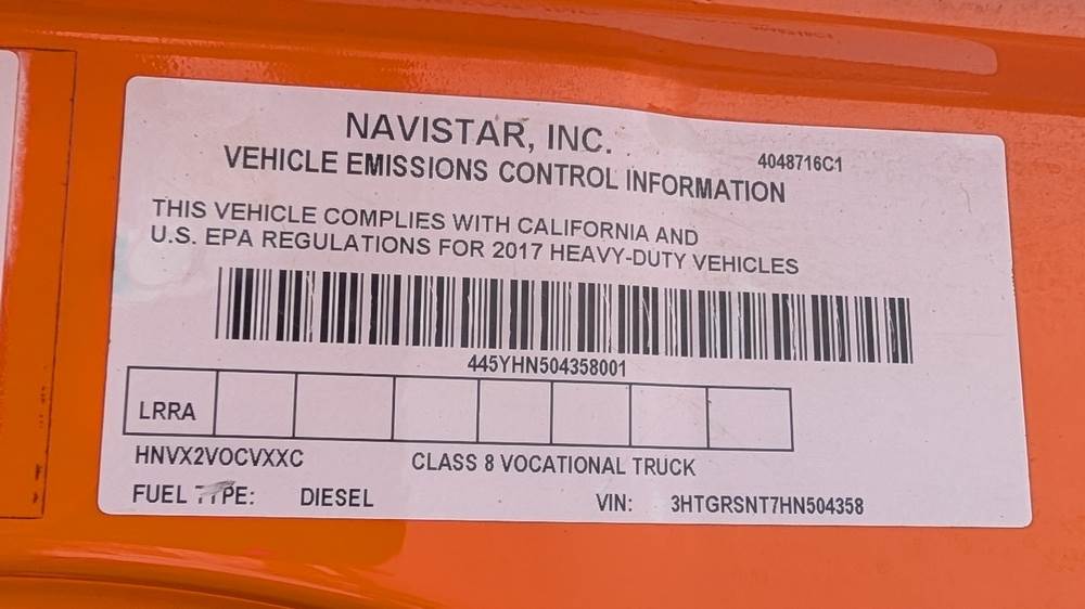 2017 International WorkStar 7600 SFA 6x4 Plow Truck; Runs, Drives, Dumps and Operates as Intended. Vin: 3HTGRSNT7HN504358, 12.4L N13 Engine, Viking Cives Plows, Tarco Dump Body, 110,000 Miles, Allison transmission. Title on hand.
