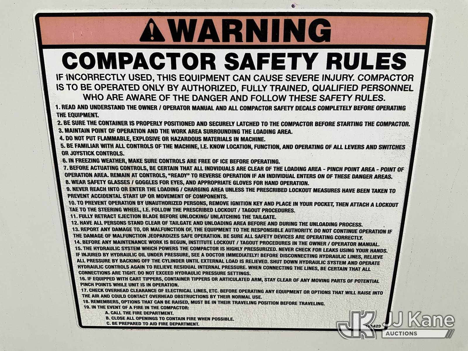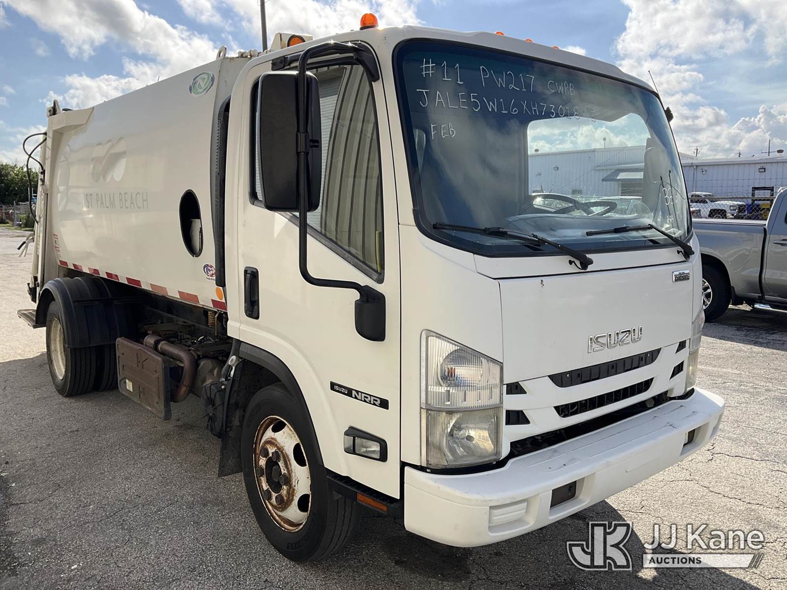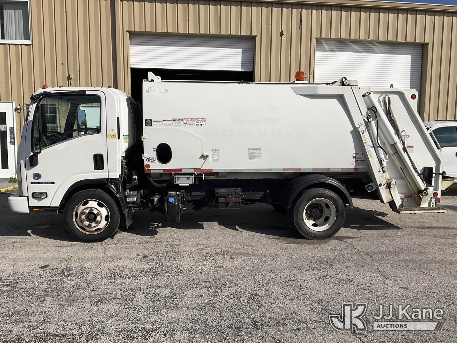 2017 Isuzu NQR Rear Load Trash Truck, 5.2L L6 diesel, 4X2, Auto, A/C, (110,383 miles) (Runs & Moves, Operating Condition Unknown, Rear Steps Damage, Rust Damage) (FL Residents Purchasing Titled Items – tax, title & registration fees will be collected at the maximum rate of $400.00 under 25,999 and $800.00 for Over 26,000 and $250.00 for Trailers – Proof of insurance is mandatory; Out of State Residents Purchasing Title Items – tax will be collected based upon your state rate) This is a Titled Item NOTE: This unit is being sold AS IS/WHERE IS via Timed Auction and is located in West Palm Beach, FL. For Pick Up & Removal information, please contact: Andy Garcia @ 561-215-0085. Removals require 24-hr Notice by Appointment Only, Buyer/Hauler must present copy of Paid-in-Full JJ Kane Release Form upon arrival. Purchaser acknowledges ALL lots must be removed within 10 business days of Auction, or a towing & storage fee may be incurred. (Buyer is responsible for removal. Assistance by consignor or JJ Kane Auctions is not assured.)