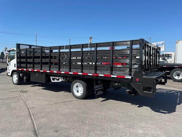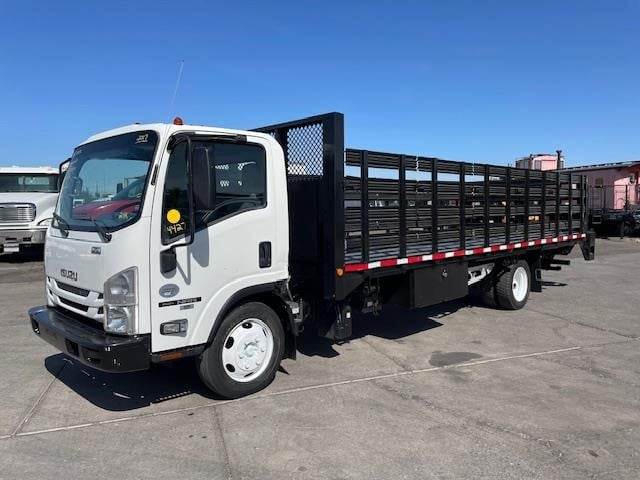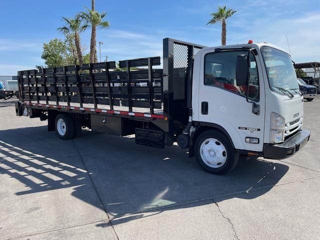 2017 Isuzu NRR 22' x 102" Single-Axle Flat-Bed Stake Truck, Isuzu 4HK1-TC 5.2L @ 210 H.P., Exhaust Brake, 5-Speed Automatic O/D Transmission, Spring-Suspension, 200" W.B., 19.5K G.V.W.R., NON-CDL, Hydraulic Brakes, 7,275# Front-Axle, 13,660# Rear-Axle, Steel Wheels, 225/70R-19.5 Tires, 42" High Aluminum Stakes, Diamond-Plate Steel Floor, Headache Rack, (8) Sliding Load Strap Winches, Stake Pockets, (2) Under-Body Tool Boxes, MBB / Palfinger 2.5K Tuk-A-Way Lift-Gate, Horizontal Exhaust, D.P.F. Equipped, DEF Required, Steel 30 Gallon Fuel Tank, P/S, A/C, C/C, Dual Power Windows, Tilt-Telescoping Steering Column, Mirror Heat, Power-Door-Locks, Fleet Maintained, Commercial Financing Available O.A.C., 214,396 Miles!