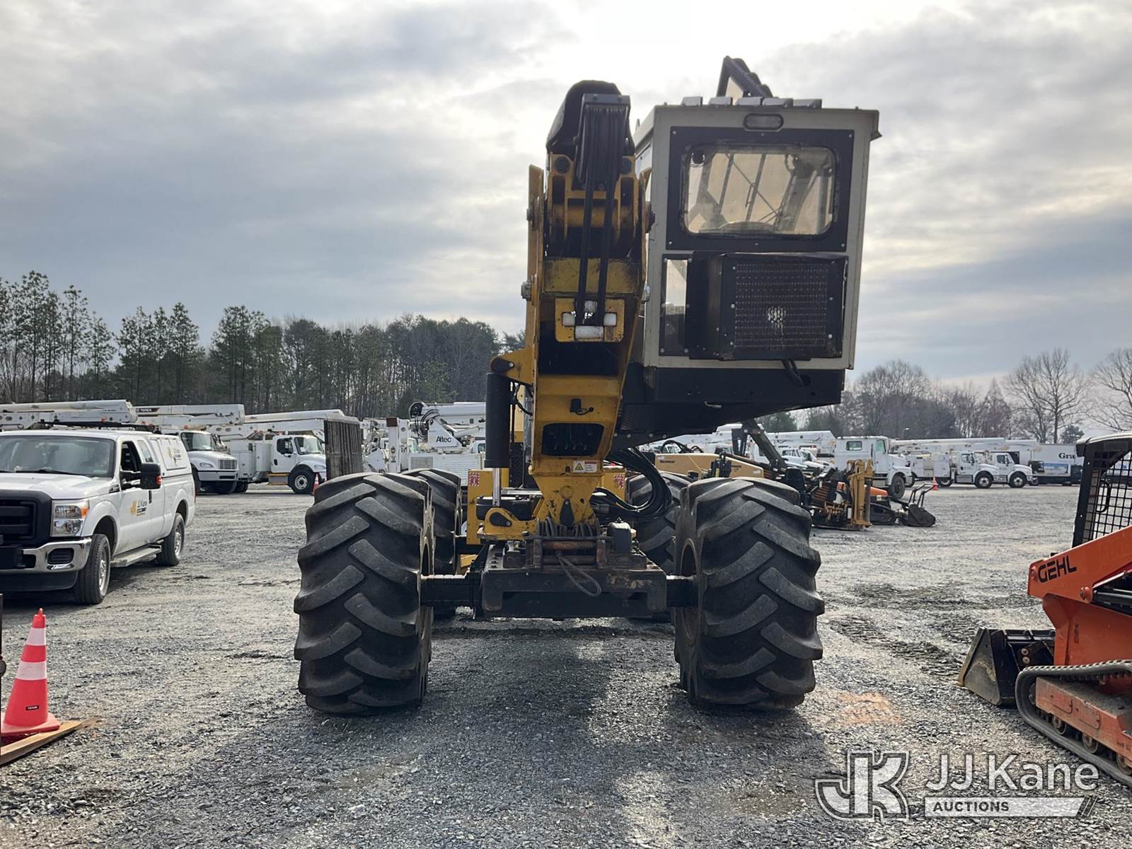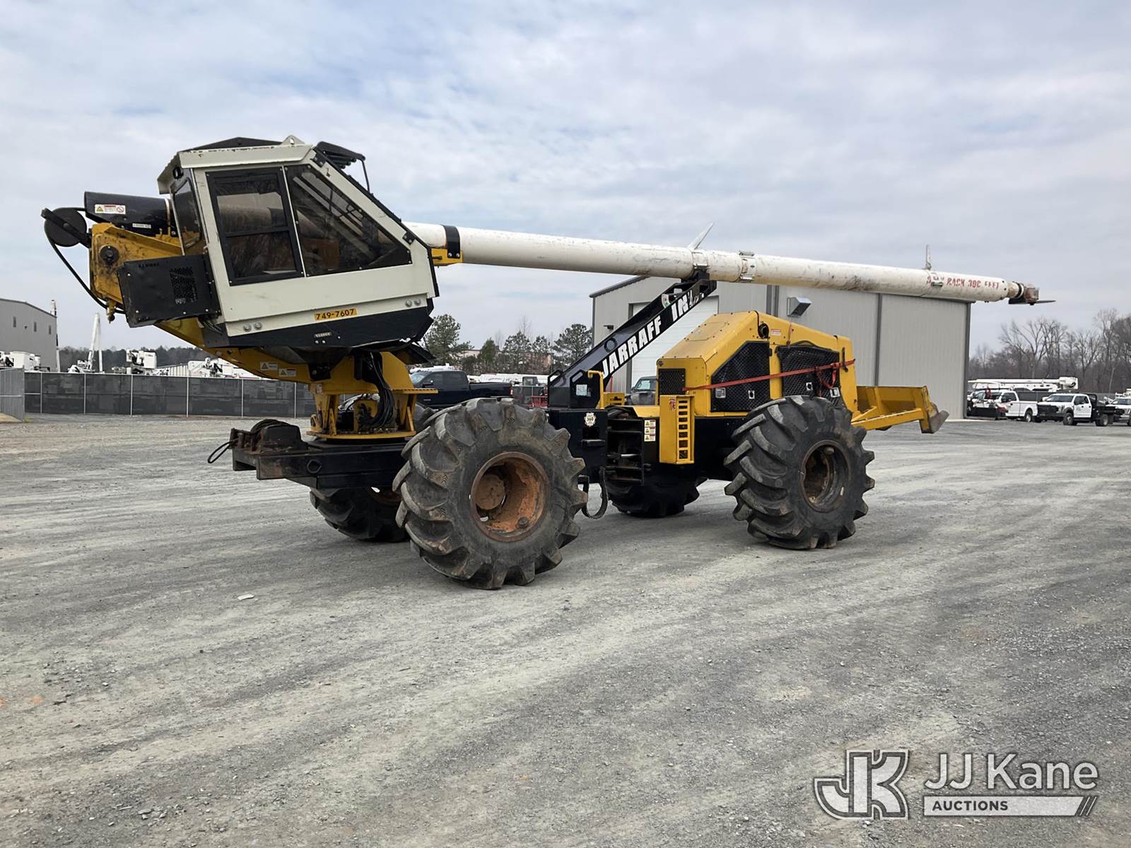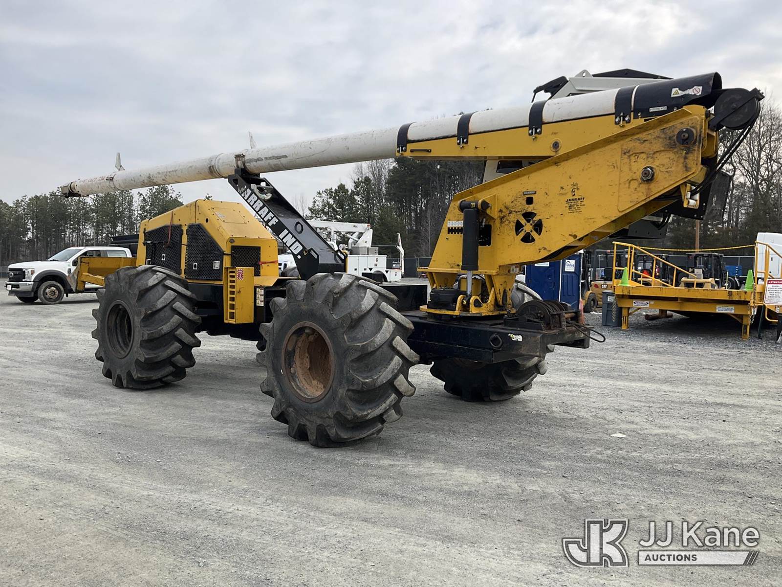 2017 Jarraff 4 Wheel Drive Articulating Rubber Tired Tree Saw, s/n 00000HWH999JB1384, Cummins diesel, Hydrostatic, A/C, with push blade, 28L-26 foam filled tires, rear winch, rear camera & enclosed cab w/AC, (Runs, Moves & Operates) (Door Hyd Bad, Hood Hinge Broken) (Seller States: Lift Cylinder & 2.0 Upright Weldment Assembly Needs Repairs) (Reads 7,248 hours) NOTE: This unit is being sold AS IS/WHERE IS via Timed Auction and is located in China Grove, NC. Inspection & preview days for this unit are the 2 business days prior to the first day of items closing for this auction, item is located at 820 E NC Hwy 152 China Grove, NC 28023 and hours of operations are 8a-4p. For pre-sale questions, please contact Office Staff @ (704) 674-1113. (Buyer is responsible for removal. Assistance by consignor or JJ Kane Auctions is not assured.)