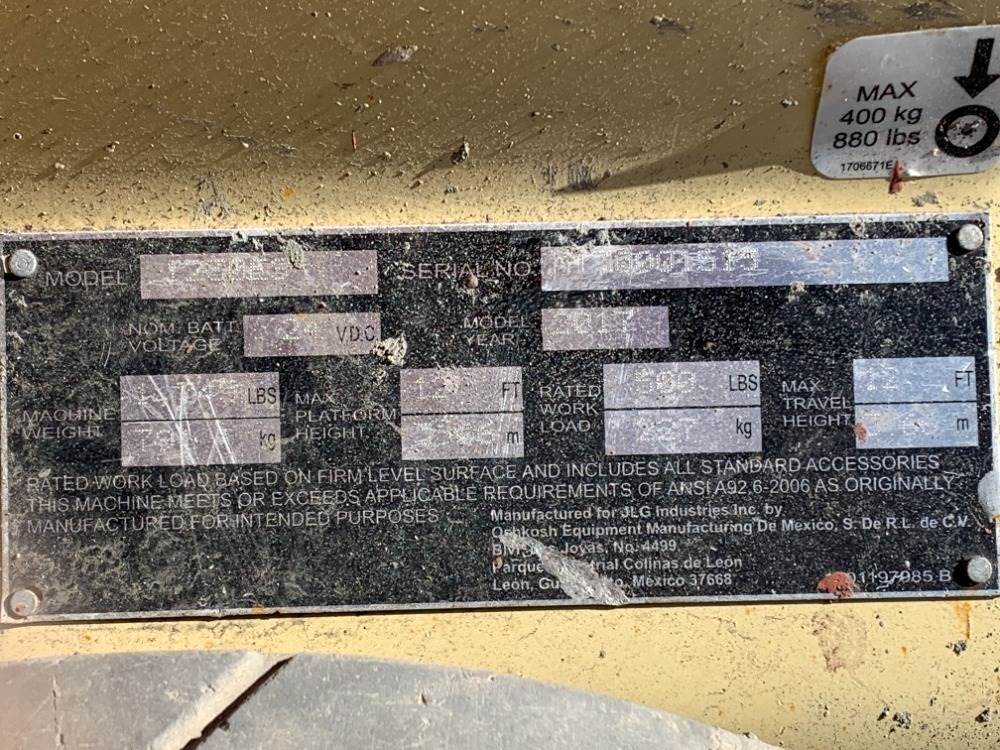 2017 JLG 1230ES PERSONNEL LIFT, electric, 12' lift, 557 hours indicated. s/n:M130001515