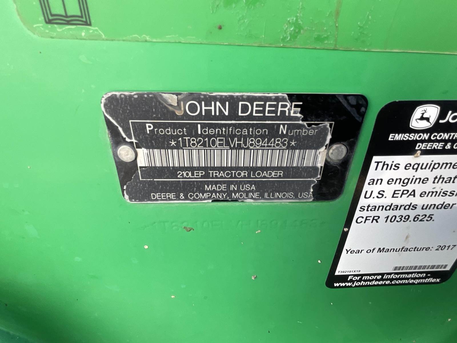 2017 John Deere 210L EP Tractor Loader