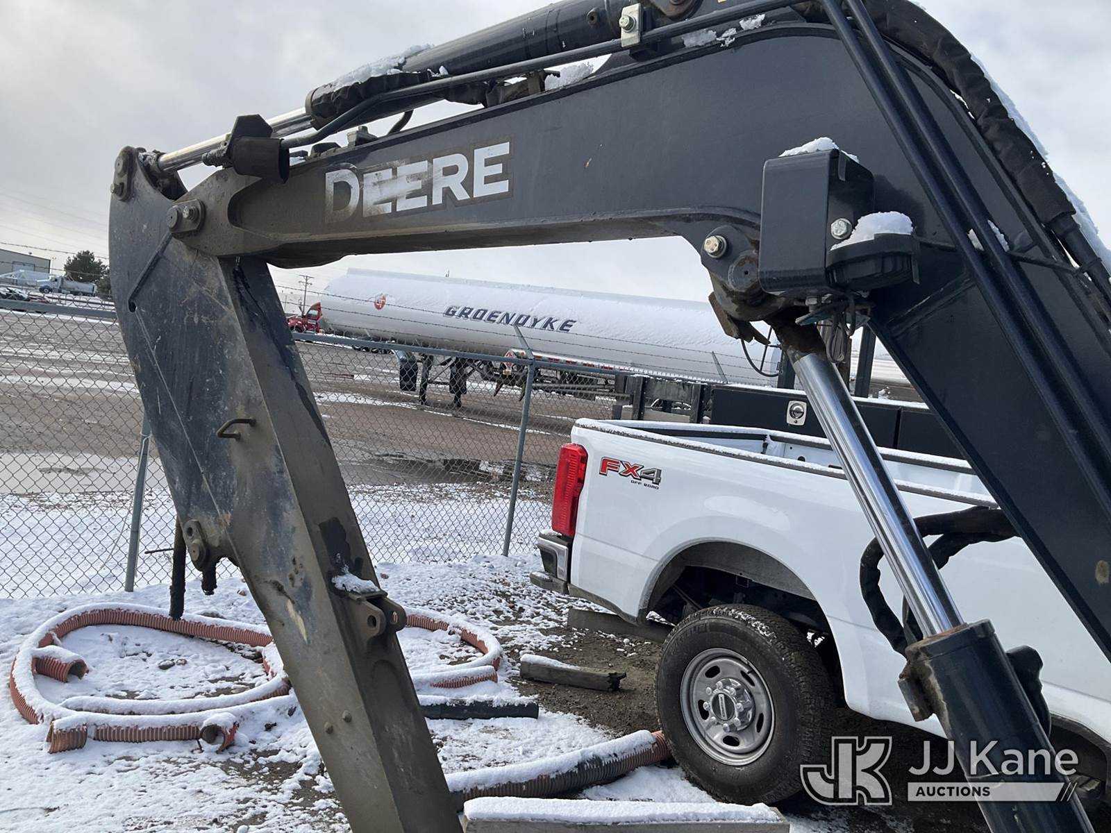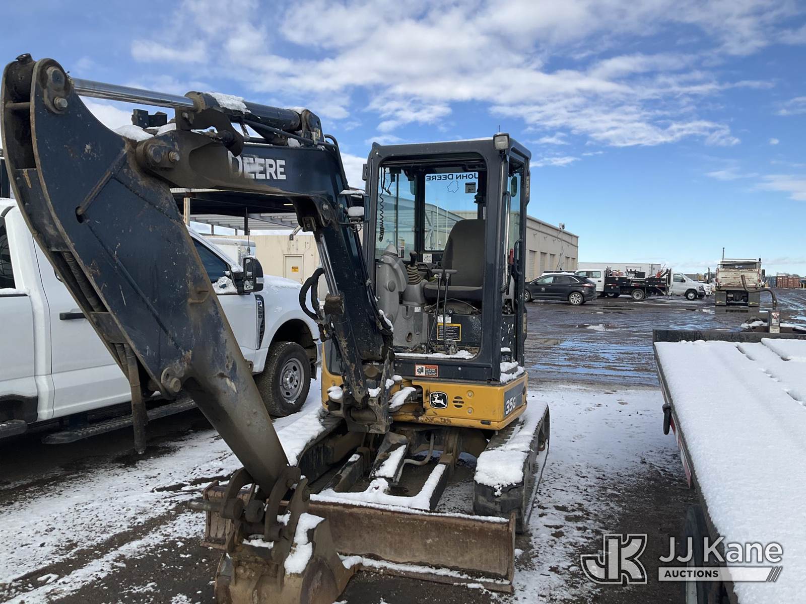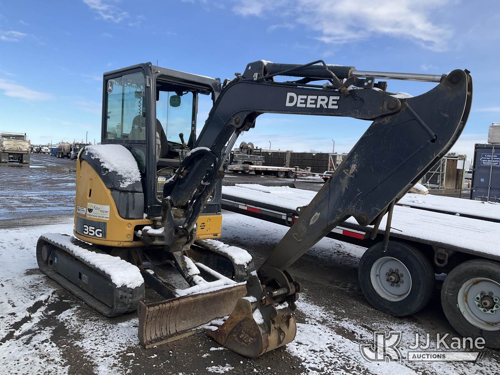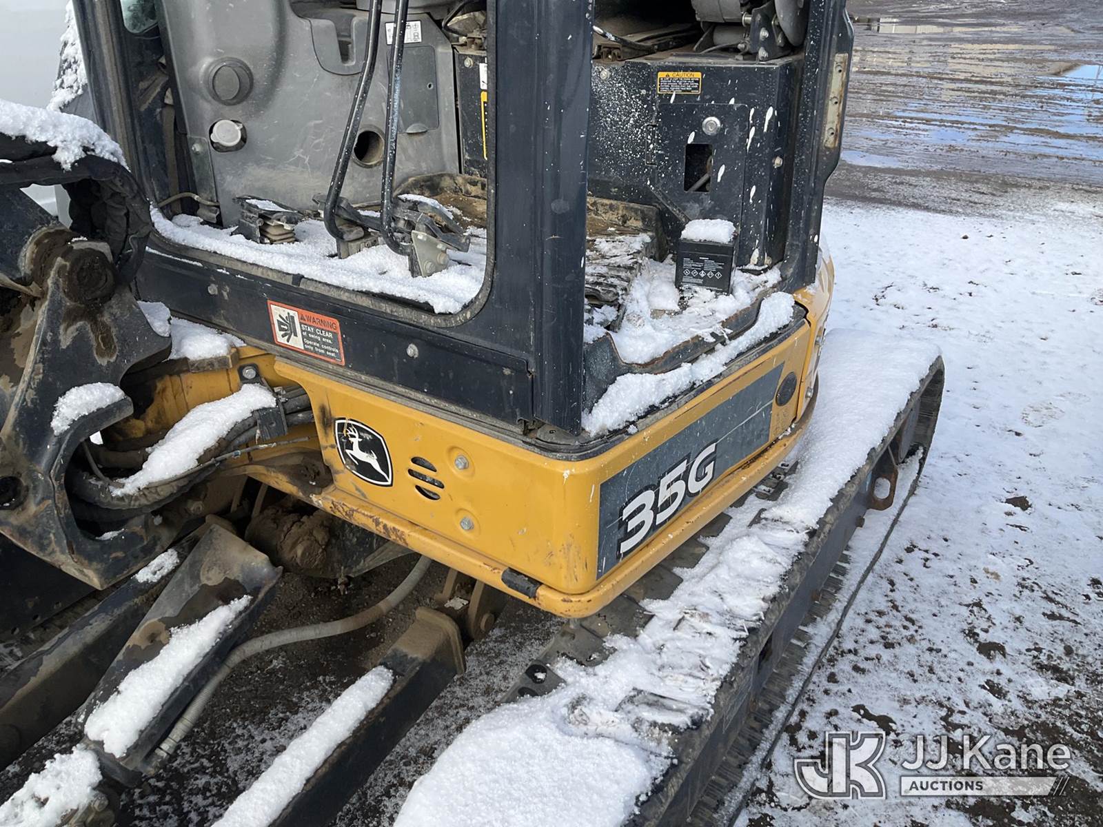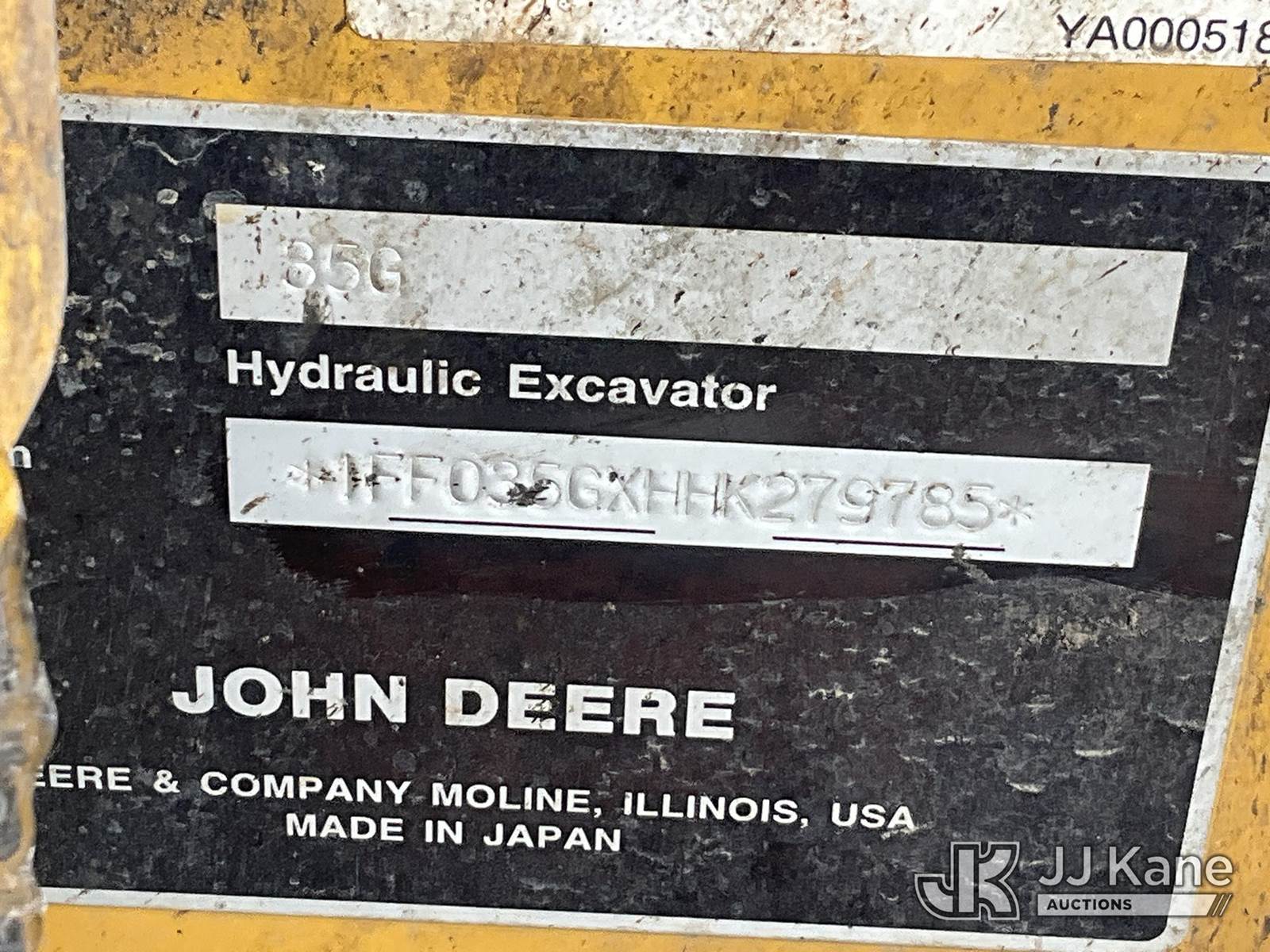 2017 John Deere 35G Mini Hydraulic Excavator, s/n 1FF035GXHHK279785, Yanmar Hydraulic Drive, diesel, A/C, with aux hydraulics, backfill blade, rubber tracks, EROPS, 7760lbs operating weight, (Seller States: Bucket Cylinder Has Been Removed, Is Leaking From Boom, Unit Has A Cracked Fuel Filter Line, Otherwise Runs, Moves, & Operates) (Reads 4,577 hours) NOTE: This unit is being sold AS IS/WHERE IS via Timed Auction and is located in Henderson, CO. Inspection & preview days for this unit are the 2 business days prior to the first day of items closing for this auction, item is located at 2105 Northland Dr Fort Lupton, CO 80621 and hours of operations are 8a-4p. For pre-sale questions, please contact Dakota Hoffman @ (720) 621-0786. Dealer License Number 47109. (Buyer is responsible for removal. Assistance by consignor or JJ Kane Auctions is not assured.)