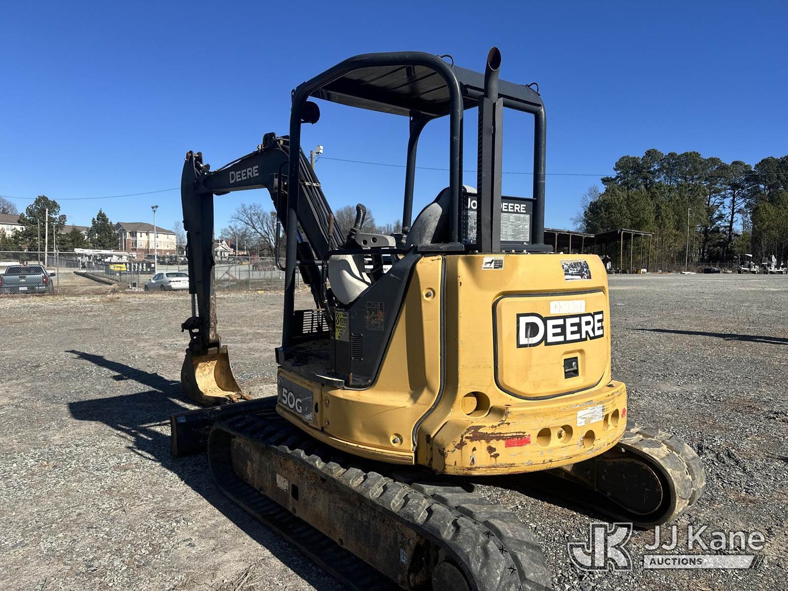 2017 John Deere 50G Mini Hydraulic Excavator, s/n 1FF050GXKGH285201, Hydraulic Drive, diesel, with aux hydraulics, backfill blade, rubber tracks, ROPS, (Runs, Moves, Operates) (Boom To Stick Cylinder Missing) (Reads 3,014 hours) NOTE: This unit is being sold AS IS/WHERE IS via Timed Auction and is located in Roxboro, NC. For more information & removal arrangements please contact Matt Kaman @ 919-800-7863. (Buyer is responsible for removal. Assistance by consignor or JJ Kane Auctions is not assured.)