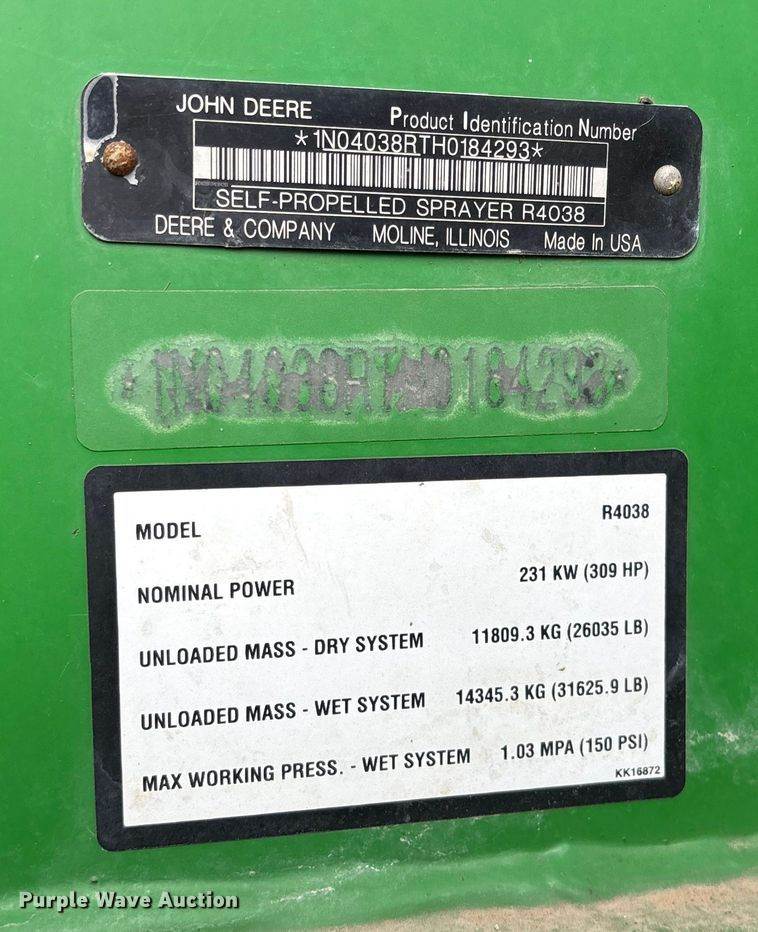 2017 John Deere R4038 sprayer