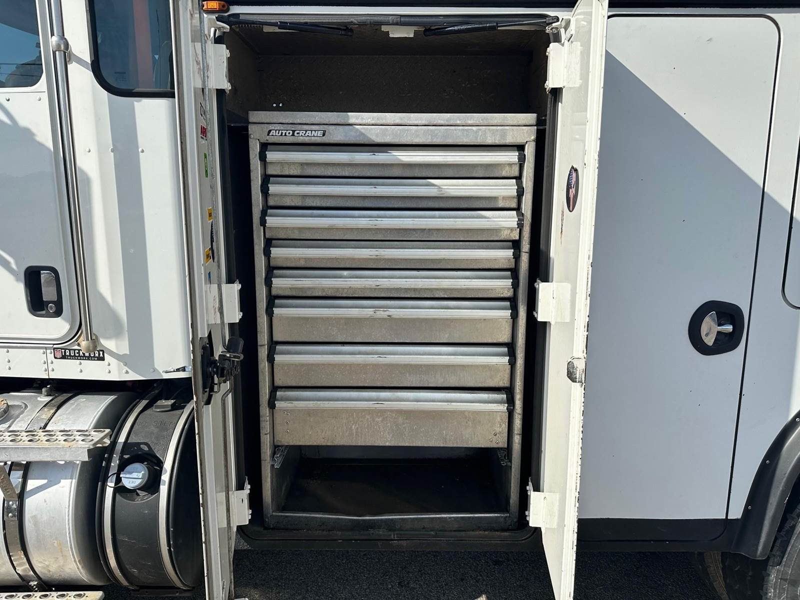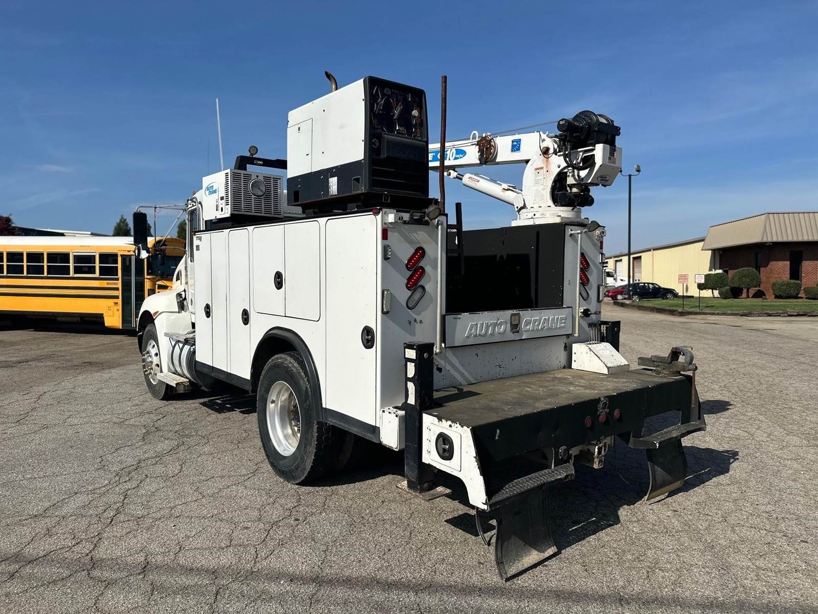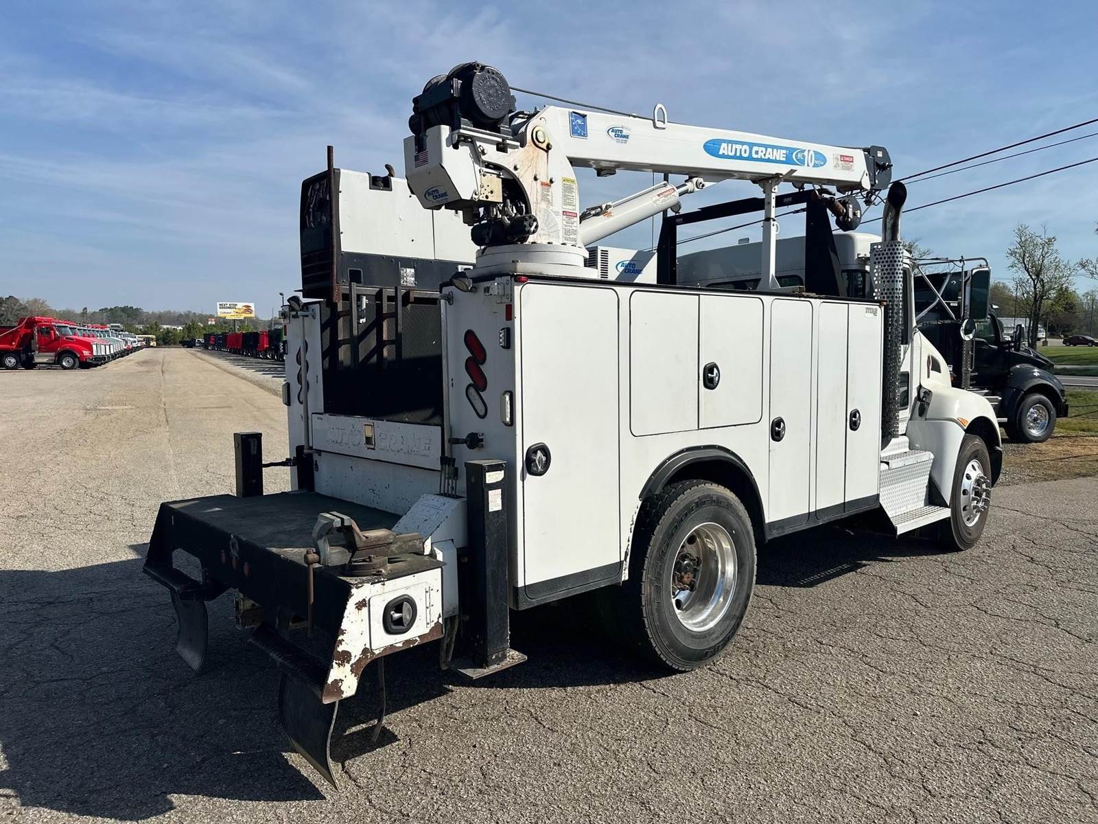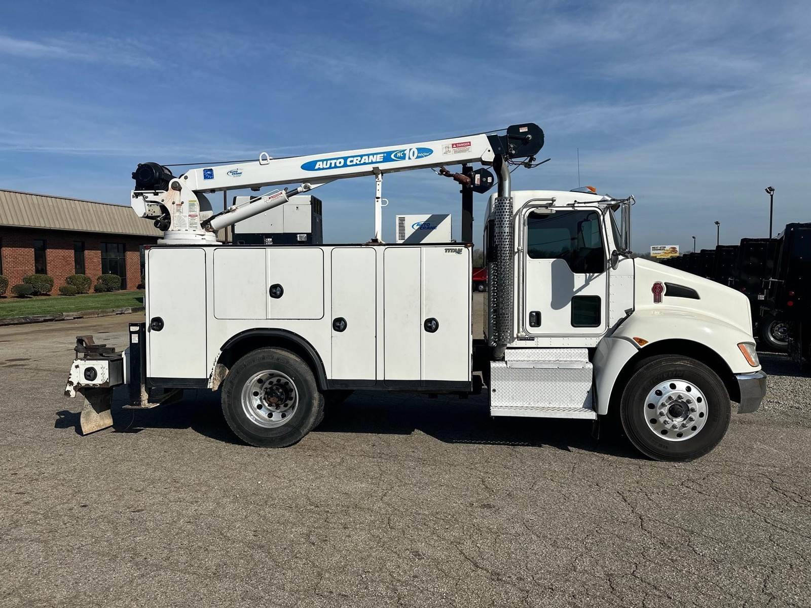 2017 Kenworth T270 --- Single Axle, PX9 Paccar 300 HP, Allison Automatic 6 Speed, 5.25 Ratio, 10,000 Front Axle, 16,000 Rear Axle, 157" Wheelbase, Air Ride Suspenison, Air Brake, Differential Lock, Reese Hitch, 11' Steel AUTOCRANE Titan Service Body, Tool Tray Bins, Hobart Welder/Generator (11,000 watt), Autocrane Hydraulic Air Compressor, Dual Hydraulic Outriggers, Vise, Hose Reel, Wireless Remote, AutoCrane HC10 Series Crane with 10,000 Lb. Capacity, Strobe Lights, Aluminum Front Wheels, Aluminum Rear Wheels, 56 Gallon Aluminum Fuel Tank, Daylite Doors, Peep Window, High Level Interior, Wood Grain Dash, Heated Mirrors, Cruise Control, Tilt Steering Wheel, AM/FM Bluetooth Radio, Power Passenger Window, Power Door Locks, P/S, AC.