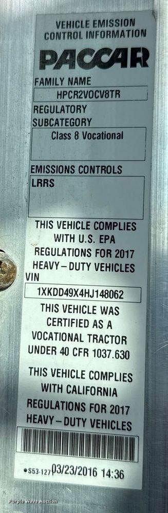 VIN: 1XKDD49X4HJ148062