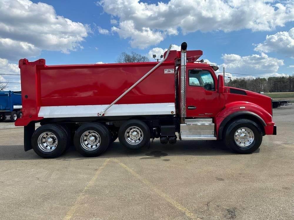 Tri Axle, ISX15 Cummins 475 HP, Allison Automatic 6 Speed, 4.56 Ratio, 20,000 Front Axle, 46,000 Rear Axle, 214" Wheelbase, 20' 1" Bridge, Chalmers, Double Frame, 3 Stage Engine Brake, Air Brake, Full Locking Rears, 16' Steel OX STAMPEDE Dump Body, 62" Sides, Air Gate, Electric Tarp, Aluminum Front Wheels, Aluminum Rear Wheels, Dual Stacks, Aluminum Fuel Tank, Daylite Doors, Air Ride Cab, Dual High Back Seats, High Level Interior, Chrome Gauge Package, Heated Mirrors, Cruise Control, Tilt Steering Wheel, AM/FM CD, Power Windows, P/L, P/S, A/C