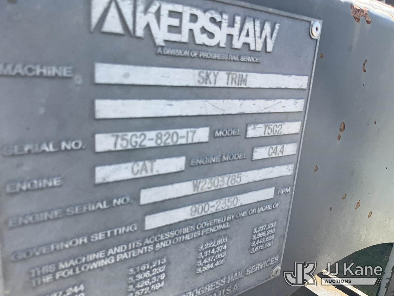 2017 Kershaw SkyTrim 75G2 Articulating Rubber Tired Tree Saw, s/n 75G2-820-17, Cat C4.4 Hydrostatic, diesel, with push blade, rear winch, (Not Running, Condition Unknown, Has Power, Impeller Disconnected, Display Screen Lights, AC Removed) NOTE: This unit is being sold AS IS/WHERE IS via Timed Auction and is located in Texarkana, AR. For more information & removal arrangements please contact Dexter Martin @ 770-570-9414. (Buyer is responsible for removal. Assistance by consignor or JJ Kane Auctioneers is not assured.)