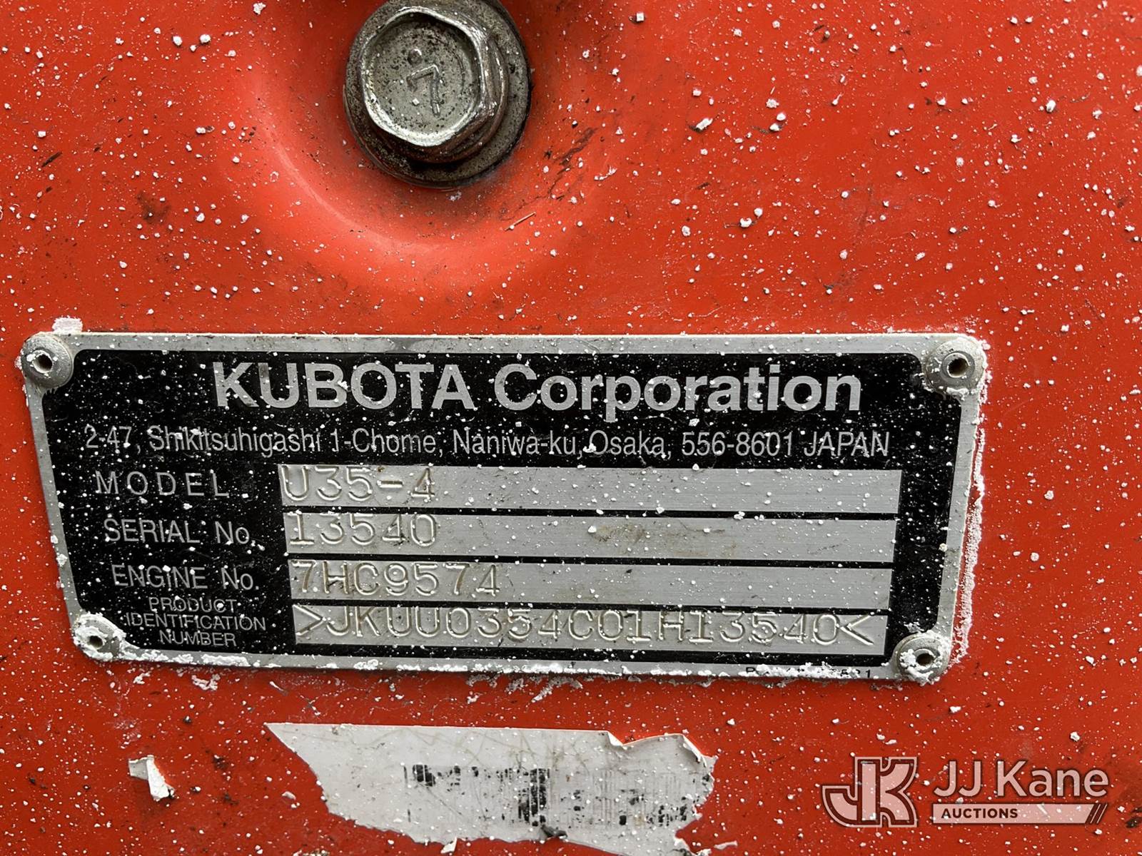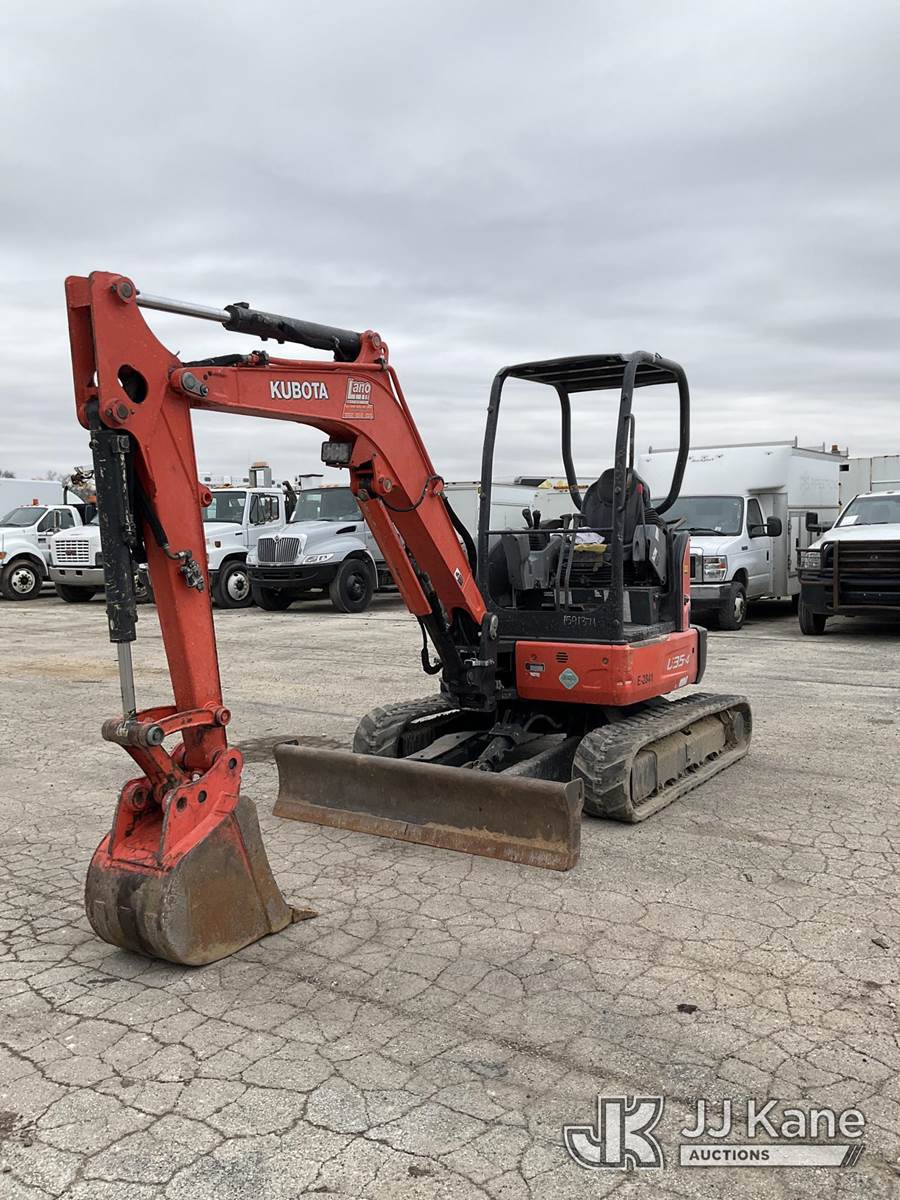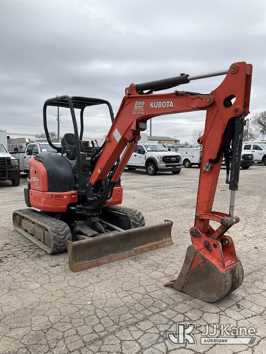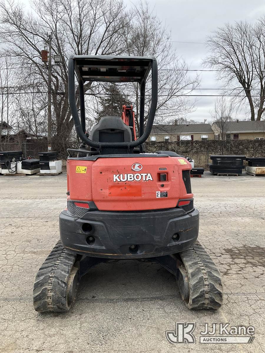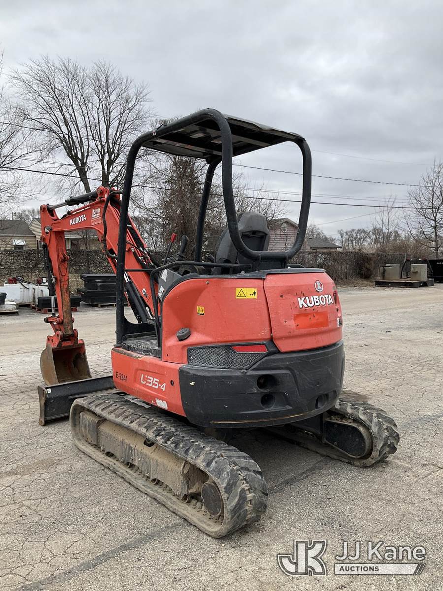 2017 Kubota U35-4 Mini Hydraulic Excavator, s/n JKUU0354001H13540, Kubota diesel, Hydraulic Driven, with rubber tracks, backfill blade, digging bucket & ROPS, (Runs, Moves, Operates) (Reads 4,089 hours) NOTE: This unit is being sold AS IS/WHERE IS via Timed Auction and is located in South Beloit, IL. Inspection & preview days for this unit are the 2 business days prior to the first day of items closing for this auction, item is located at 14354 Dearborn Ave South Beloit, IL and hours of operations are 8a-4p. For pre-sale questions, please contact Derek Eklund at (608) 904-0618 or (derek.eklund@jjkane.com). (Buyer is responsible for removal. Assistance by consignor or JJ Kane Auctions is not assured.)