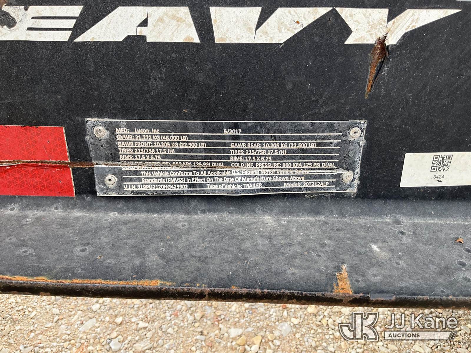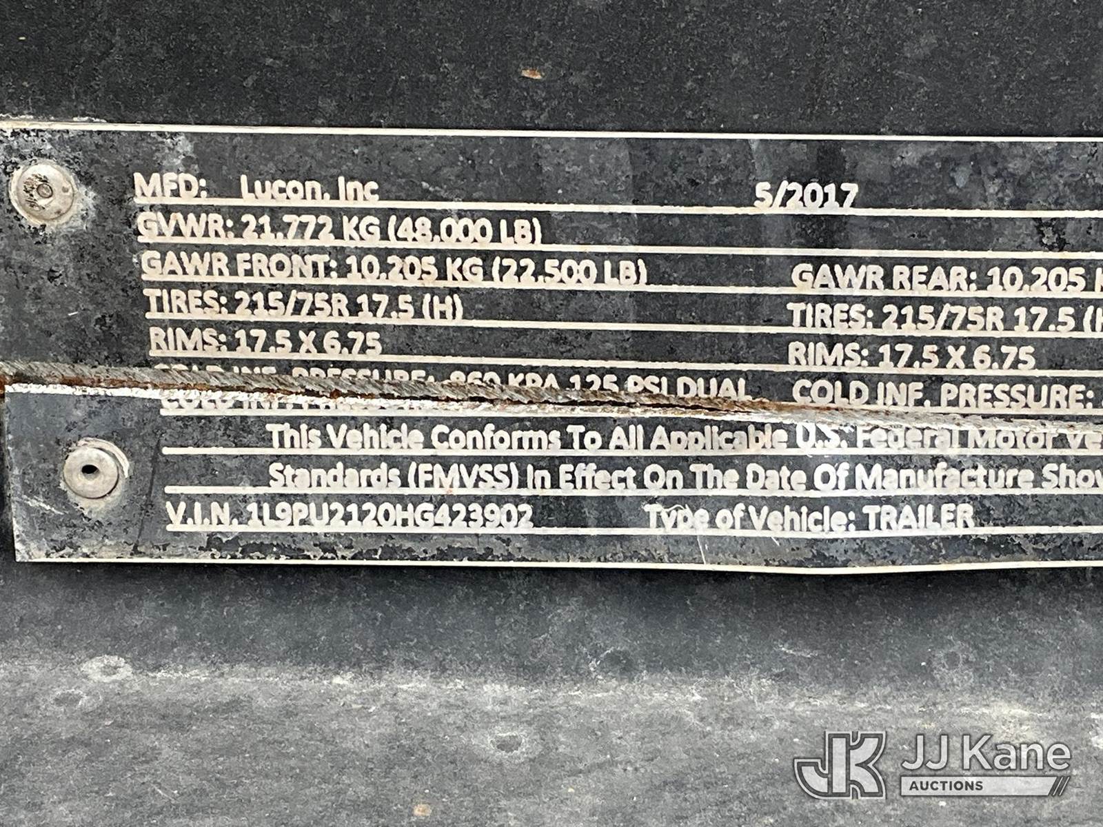 2017 Lucon Inc. 20T212ALP T/A Tagalong Equipment Trailer, (Deck Damage) This is a Titled Item NOTE: This unit is being sold AS IS/WHERE IS via Timed Auction and is located in Marion, TX. Inspection & preview days for this unit are the 2 business days prior to the first day of items closing for this auction, item is located at 3292 S Santa Clara Rd Marion, TX 78124 and hours of operations are 8a-4p. For pre-sale questions, please contact Brian Jarrell @ 210-540-3147. (Buyer is responsible for removal. Assistance by consignor or JJ Kane Auctioneers is not assured.)