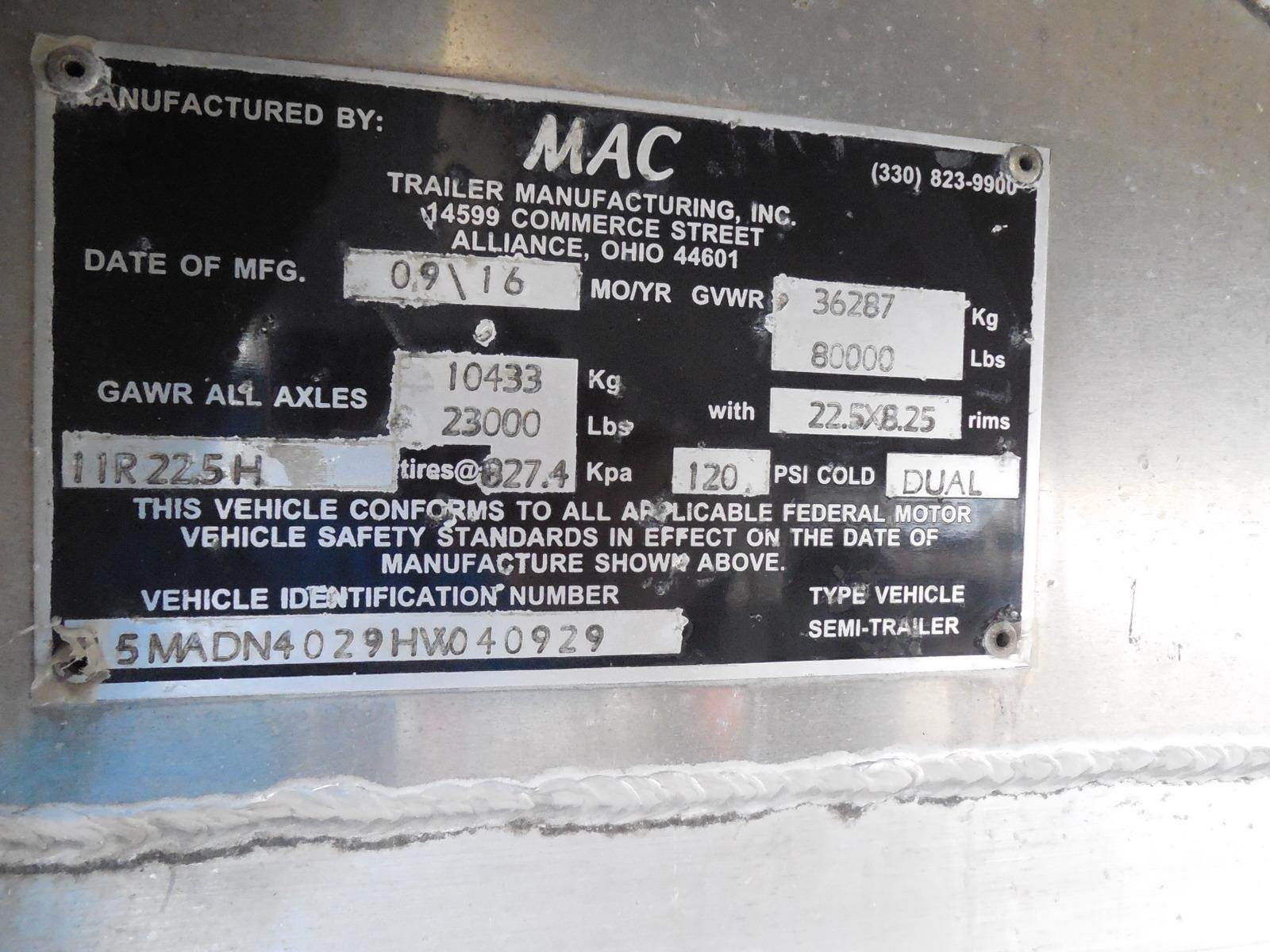 2017 MAC 40 ft Half Round End Dump Trailer - Tandem Axle, Aluminum, Air Ride