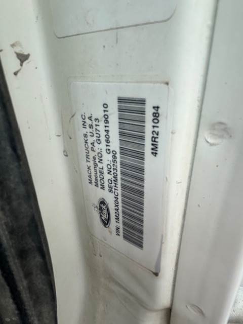 2017 Mack Granite GU713 tri-axle Concrete Mixer Truck, 248" WB, MP7 Engine, 20k Front axle, 46k Rear axle, Low mileage 107K, 13600 hours,...
