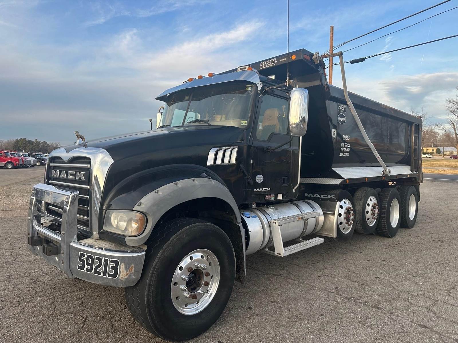 2017 Mack GU713 --- Quad Axle, MP8 Mack 455 HP, MDrive Automatic 12 SPEED, 4.19 Ratio, 20,000 Front Axle, 46,000 Rear Axle, 254" Wheelbase, 23' 4" Bridge, M RIDE, 2 Stage Engine Brake, Air Brake, Axle & Differential, 17.6' Steel HILBILT MONGOOSE Dump Body, 54" Sides, Air Gate, Electric Tarp, 2 Steerable Lift Axles, All Aluminum, Single Stack, Aluminum Fuel Tank, Daylite Doors, Peep Window, Air Ride Cab, Air Ride Seats, High Level Interior, Chrome Gauge Package, Cruise Control, Tilt & Telescopic Steering Wheel, AM/FM CD, Power Windows, P/L, P/S, AC.
