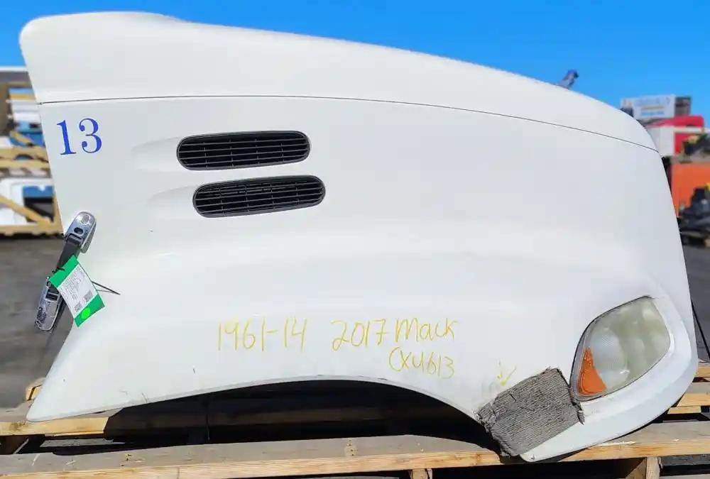2017 Mack CXU613 Hood, Complete, 52"L, SBA, P/N 82716357. Cracked On RH Fender, Cracked Near RH Headlight, Grille Cracked. Repairable For Reuse.