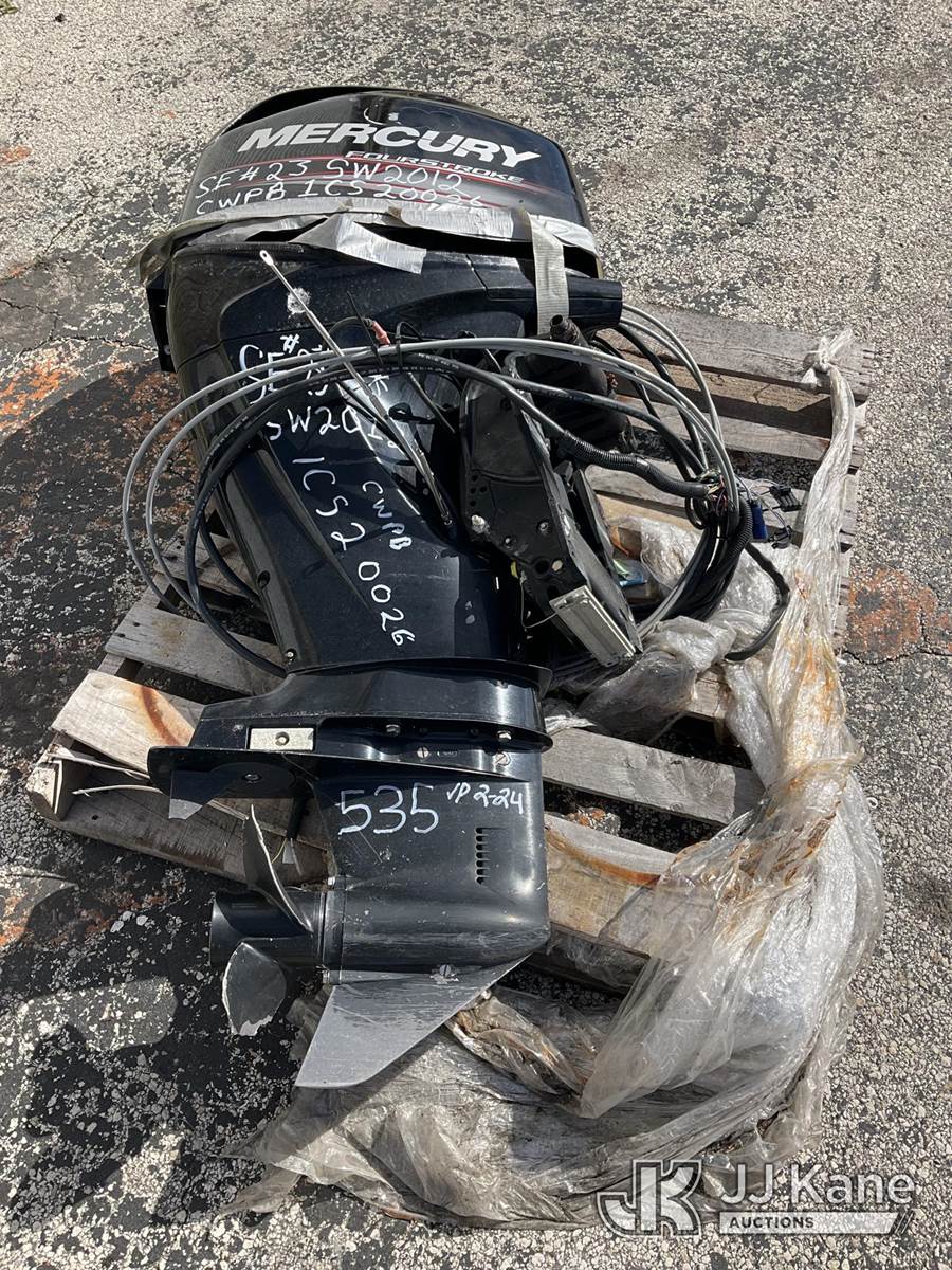 2017 Mercury Outboard Gas Boat Motor 60-HP, S/N: 1CS20026 (Operating Condition Unknown, Damaged Blade) NOTE: This unit is being sold AS IS/WHERE IS via Timed Auction and is located in West Palm Beach, FL. For Pick Up & Removal information, please contact: Andy Garcia @ 561-215-0085. Removals require 24-hr Notice by Appointment Only, Buyer/Hauler must present copy of Paid-in-Full JJ Kane Release Form upon arrival. Purchaser acknowledges ALL lots must be removed within 10 business days of Auction, or a towing & storage fee may be incurred. (Buyer is responsible for removal. Assistance by consignor or JJ Kane Auctions is not assured.)
