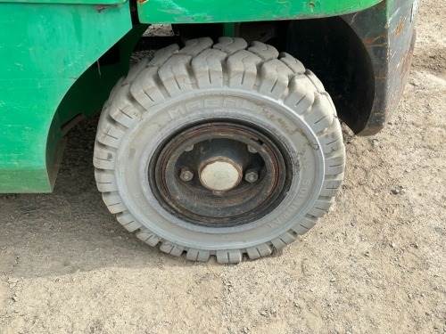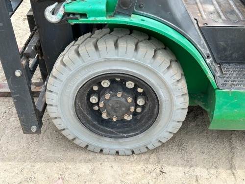 2017 MITSUBISHI FG25NGLP FORKLIFT, 5,000#, 80"mast, 3-stage, 188" lift, sideshift, dual fuel, canopy, solid tires, 2,197 hours indicated. s/n:AF17E03382