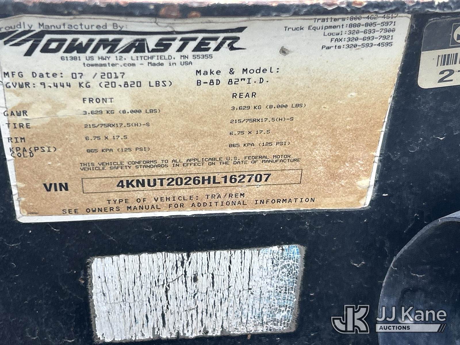 2017 Monroe Towmaster B-8D T/A Tagalong Equipment Trailer, This is a Titled Item NOTE: This unit is being sold AS IS/WHERE IS via Timed Auction and is located in Waxahachie, TX. (Buyer is responsible for removal. Assistance by consignor or JJ Kane Auctions is not assured.)