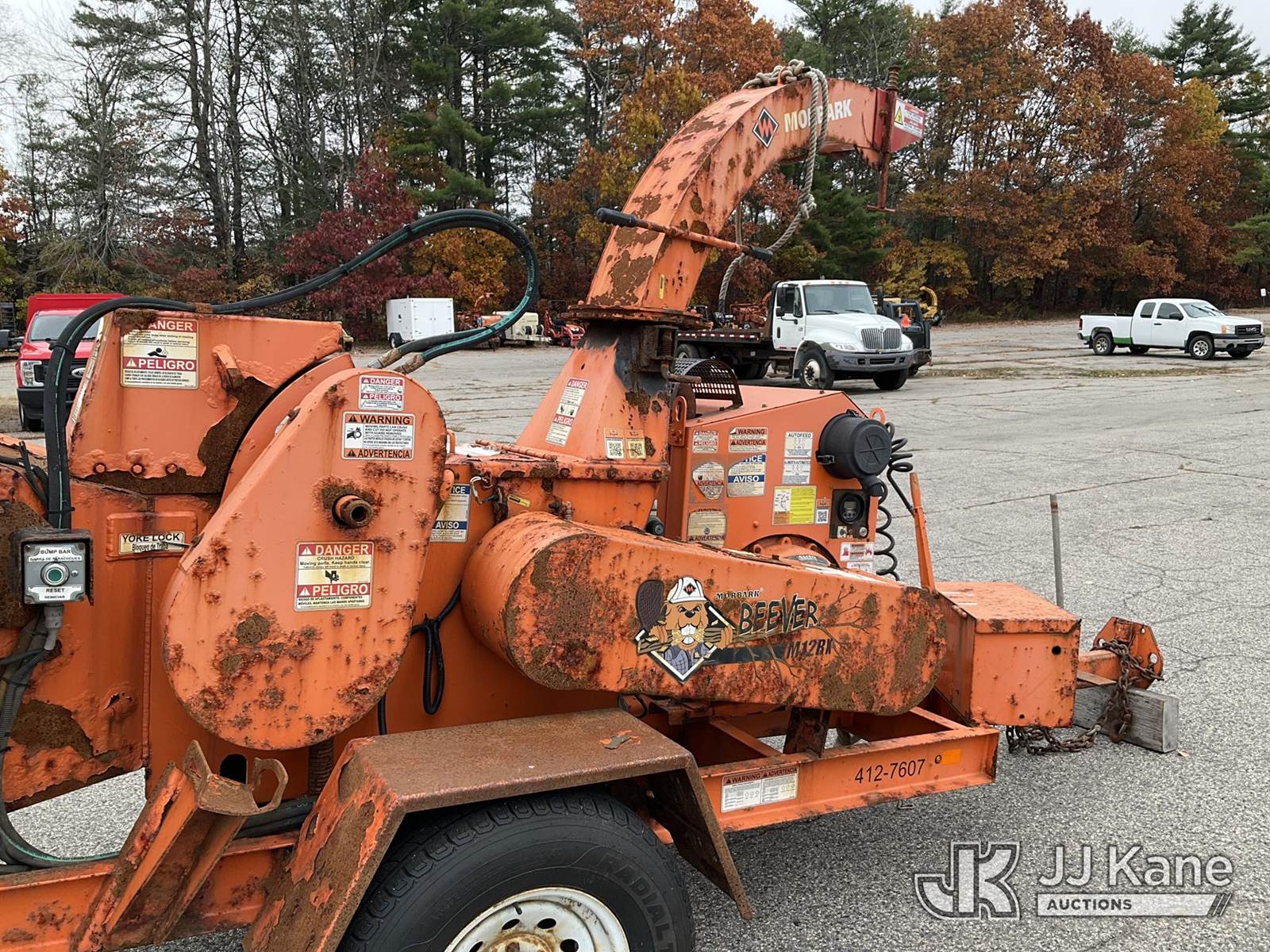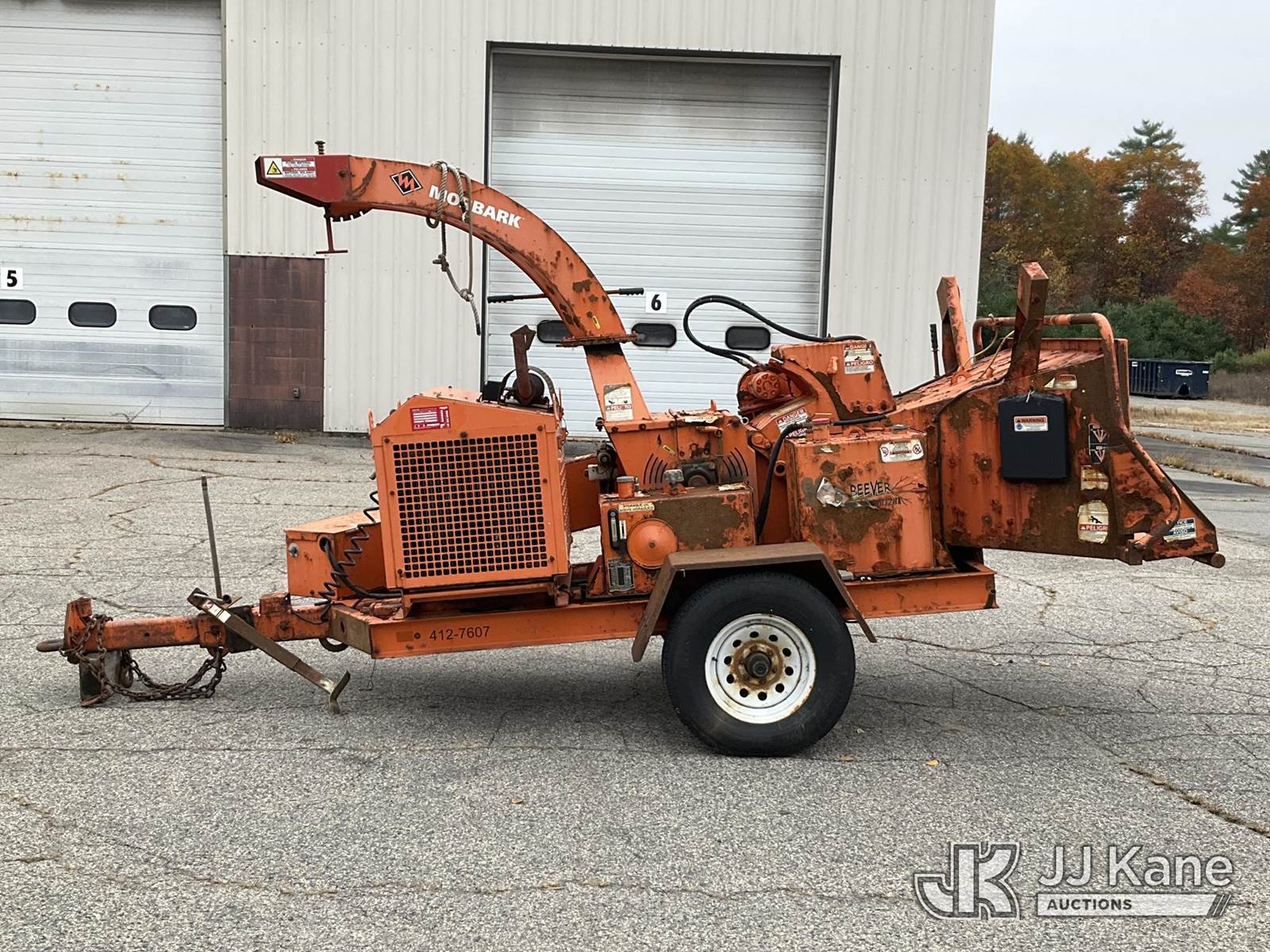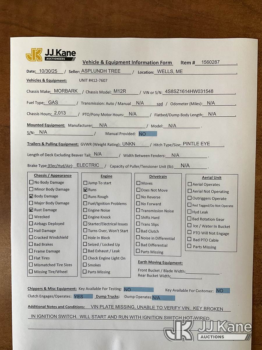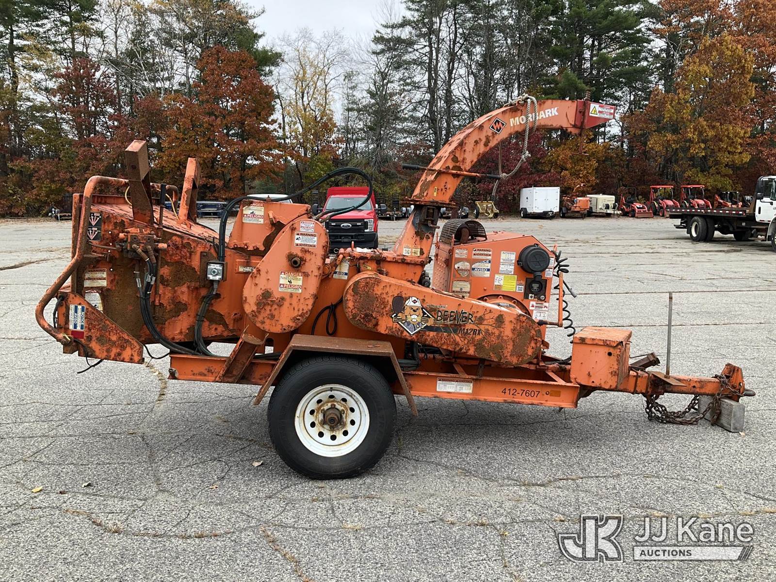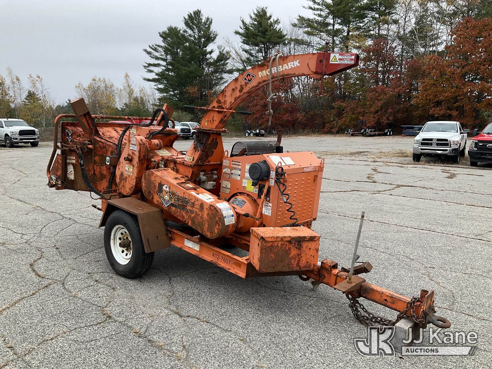 2017 Morbark M12R Portable Chipper (12in Drum), s/n 4S8SZ1614HW031548, gas Trailer Mounted (NO TITLE) (Runs, Clutch Engages, Key Broken in Ignition Switch - Will Start With Hot Wire, Missing VIN Plate, Rust/Body Damage) (Removal is by Appointment Only, Buyer MUST make a appointment prior to picking up, Buyer/Transporter Must have PAID IN FULL RELEASE. No onsite assistance available, Please Come prepared.) (Reads 2,013 hours) NOTE: This unit is being sold AS IS/WHERE IS via Timed Auction and is located in Wells, ME. Inspection & preview days for this unit are by appointment only; please contact us at contact@jjkane.com or 84-Go-JJKane for more details. (Buyer is responsible for removal. Assistance by consignor or JJ Kane Auctioneers is not assured.)