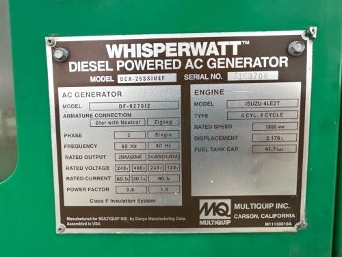 2017 MULTIQUIP DCA25SSIU4F GENERATOR