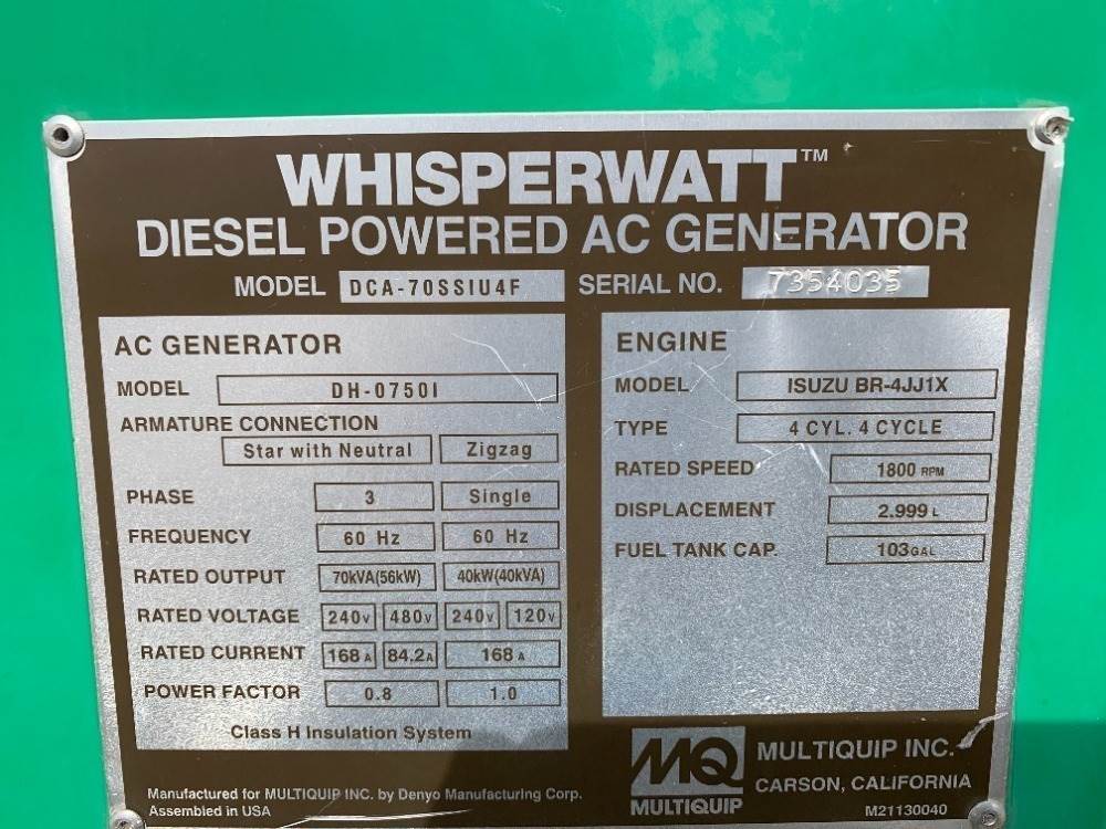 2017 Multiquip DCA70SSIU4F Generator