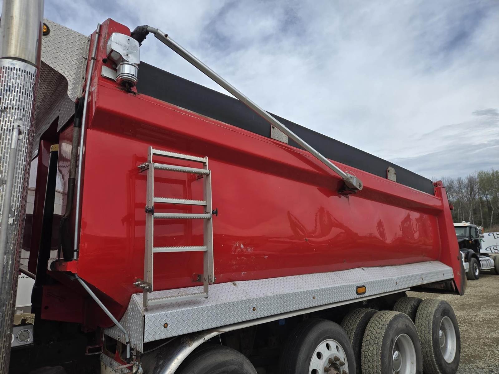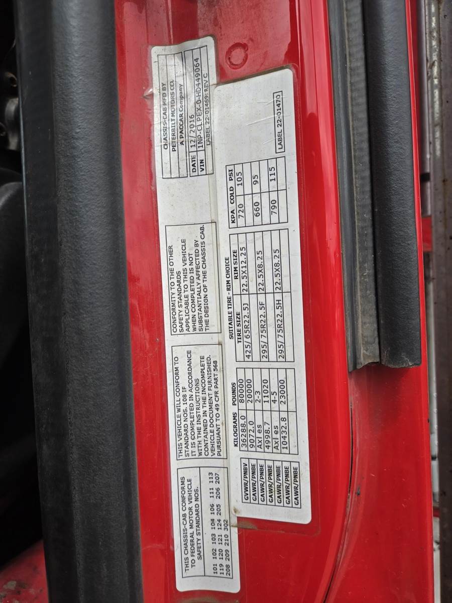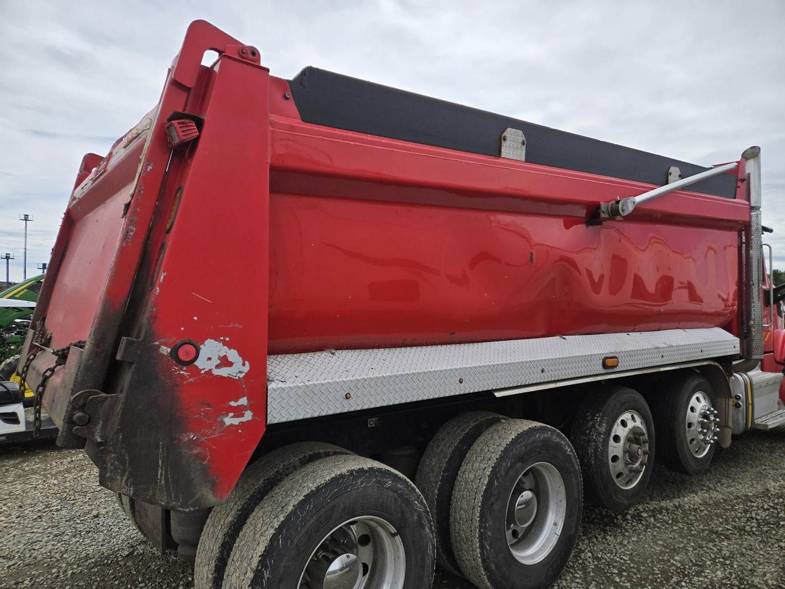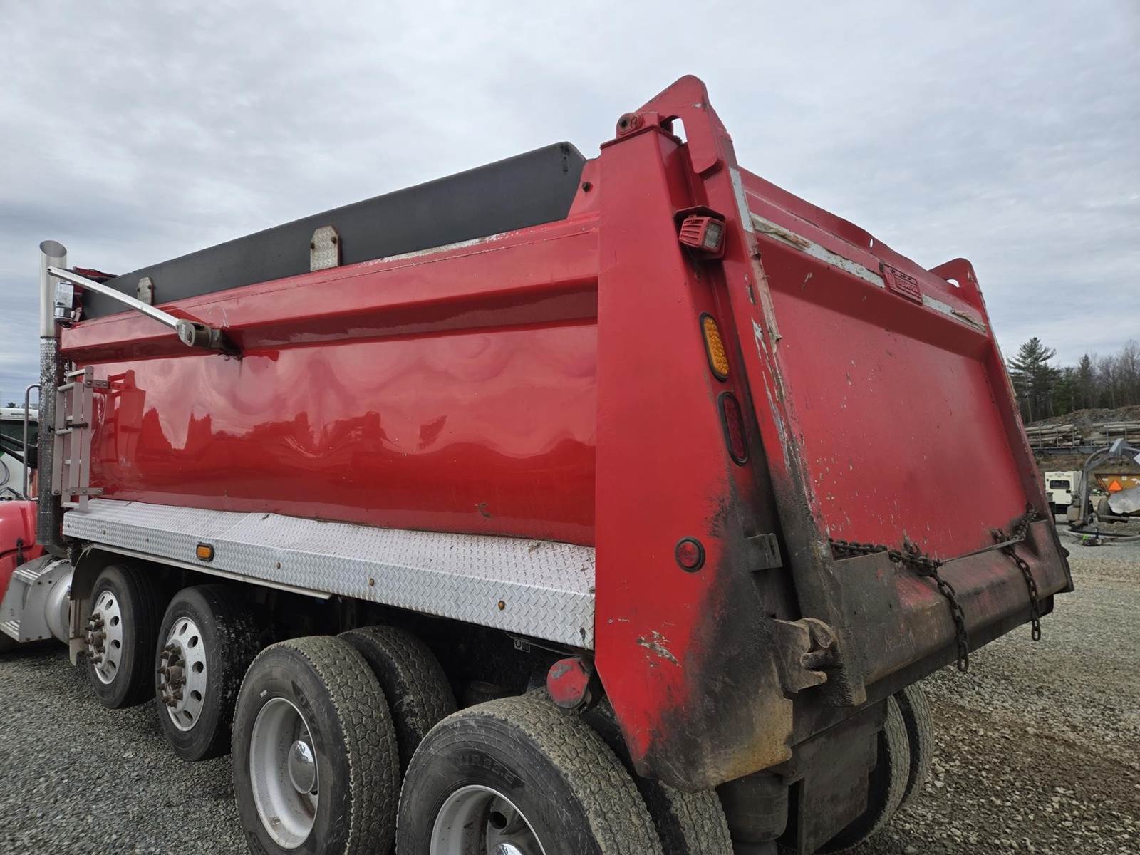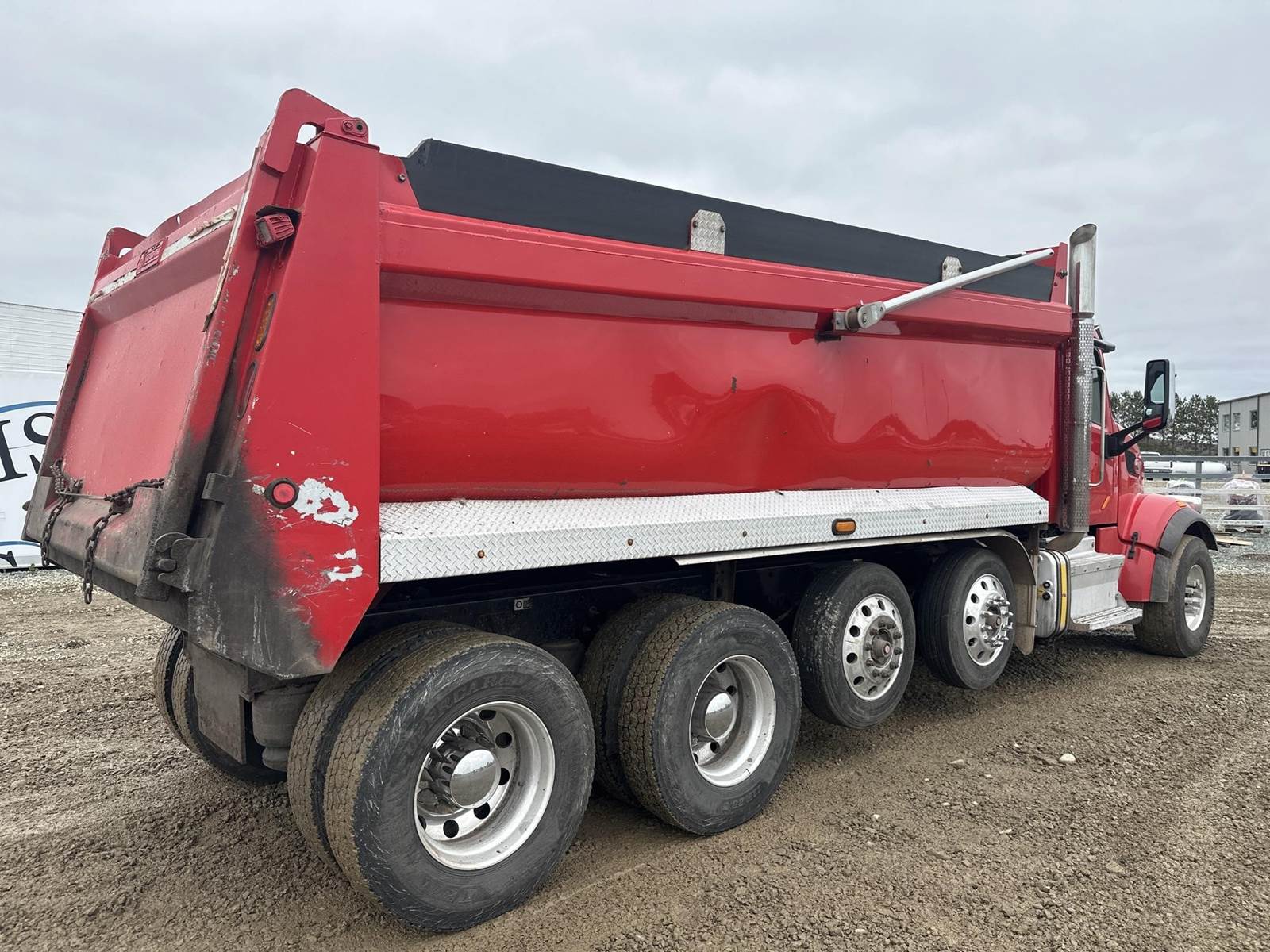18 Speed Eaton Fuller Manual Transmission, PTO, Full Lockers, (2) Air Pusher Axles, 80000lb GVWR, 20000lb Front Axle, Air Ride Suspension, Approx 16' Dump Bed, Air Locking Tailgate, Electric Tarper, Heat/Ac, Am/Fm Radio, Cruise Control, Steering Wheel Controls, Power Windows, Power Locks, Power Mirrors, Heated Mirrors, Air Ride Driver Seat, 11R22.5 Rear Tires, 255/70R22.5 Pusher Tires, 425/65R22.5 Front Tires
