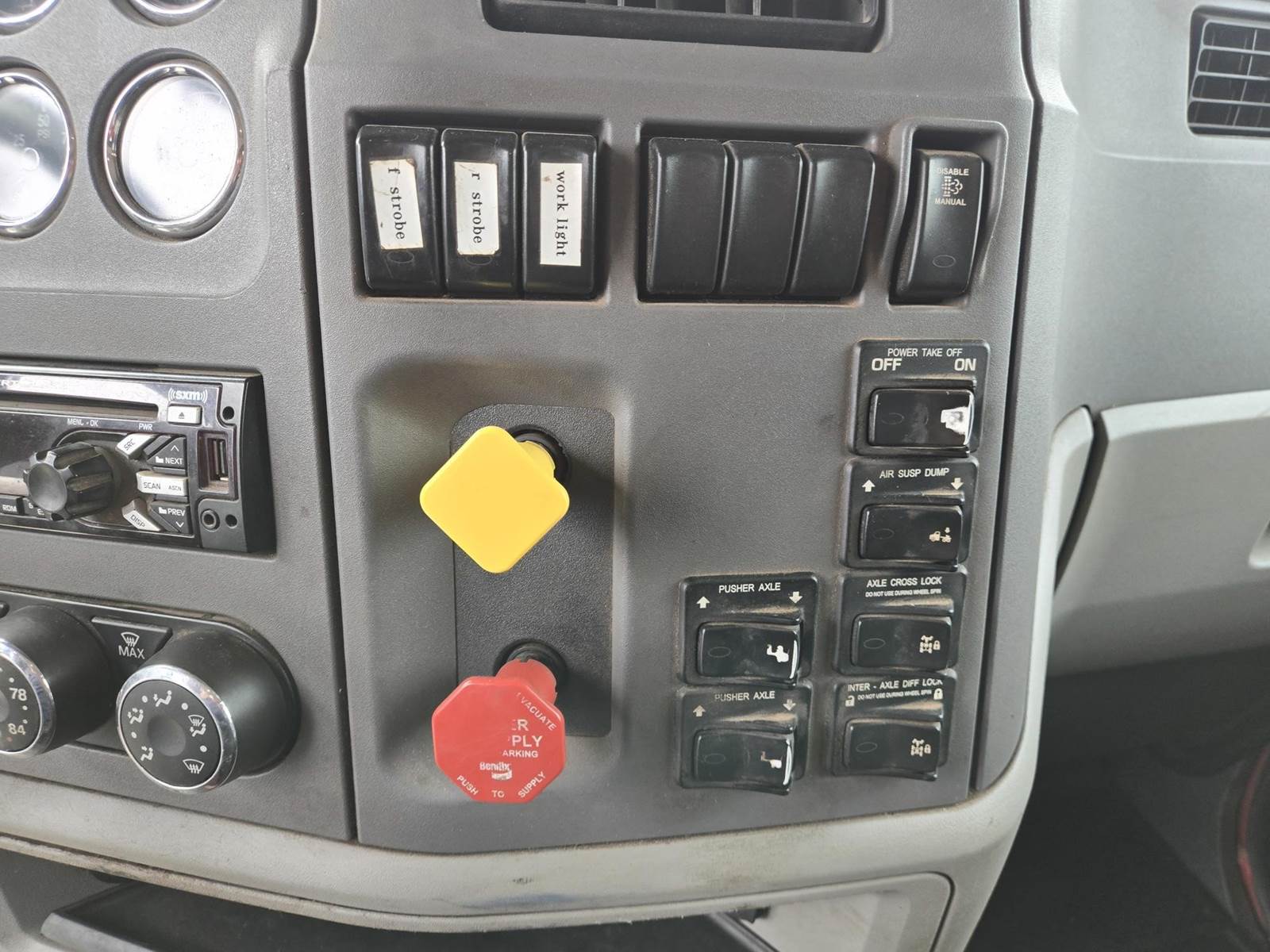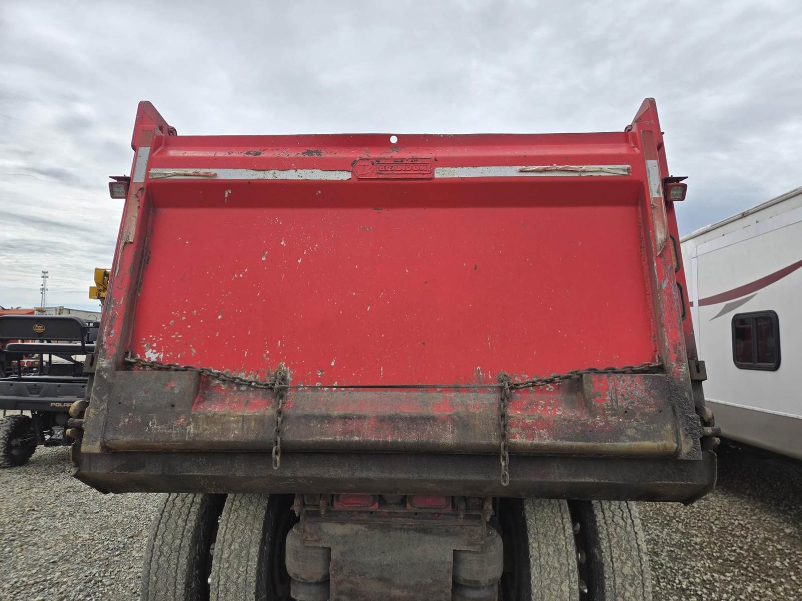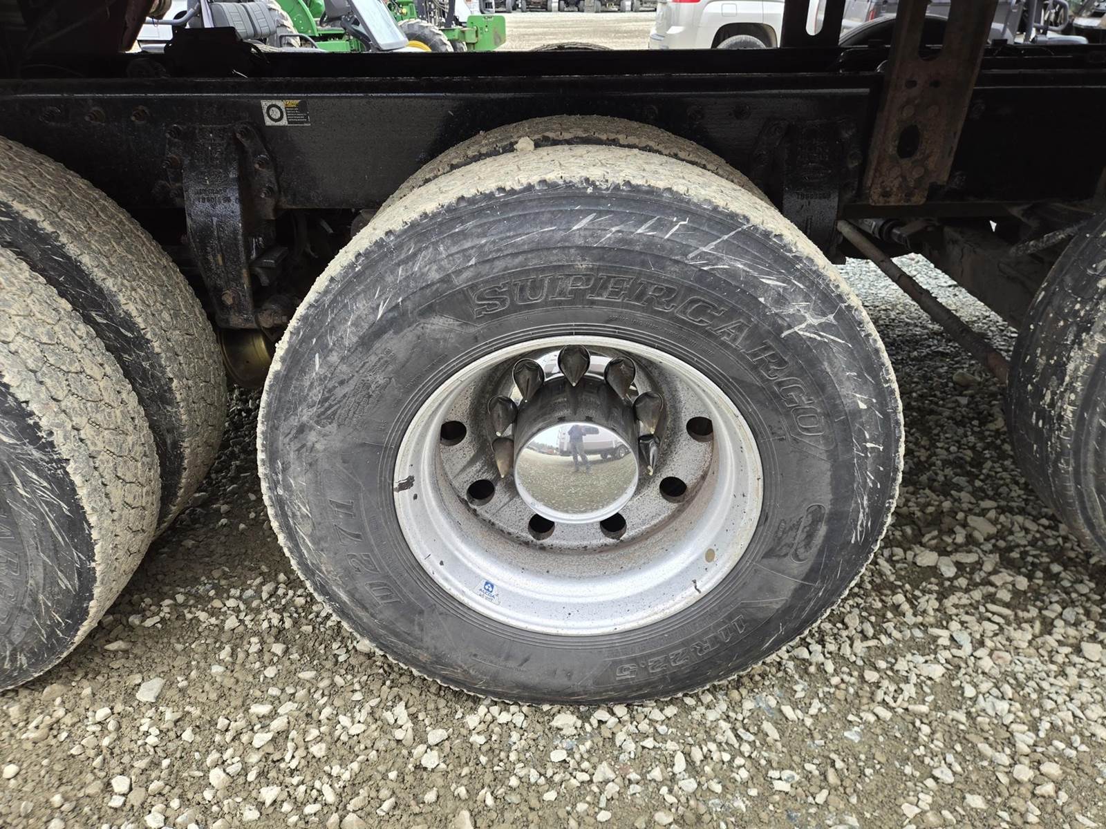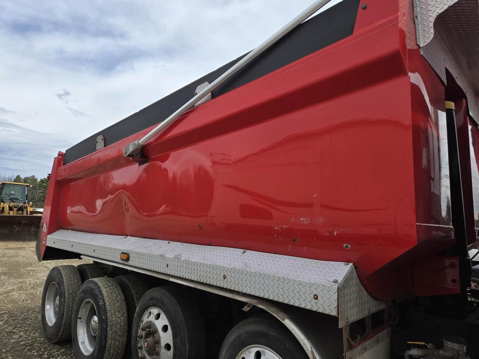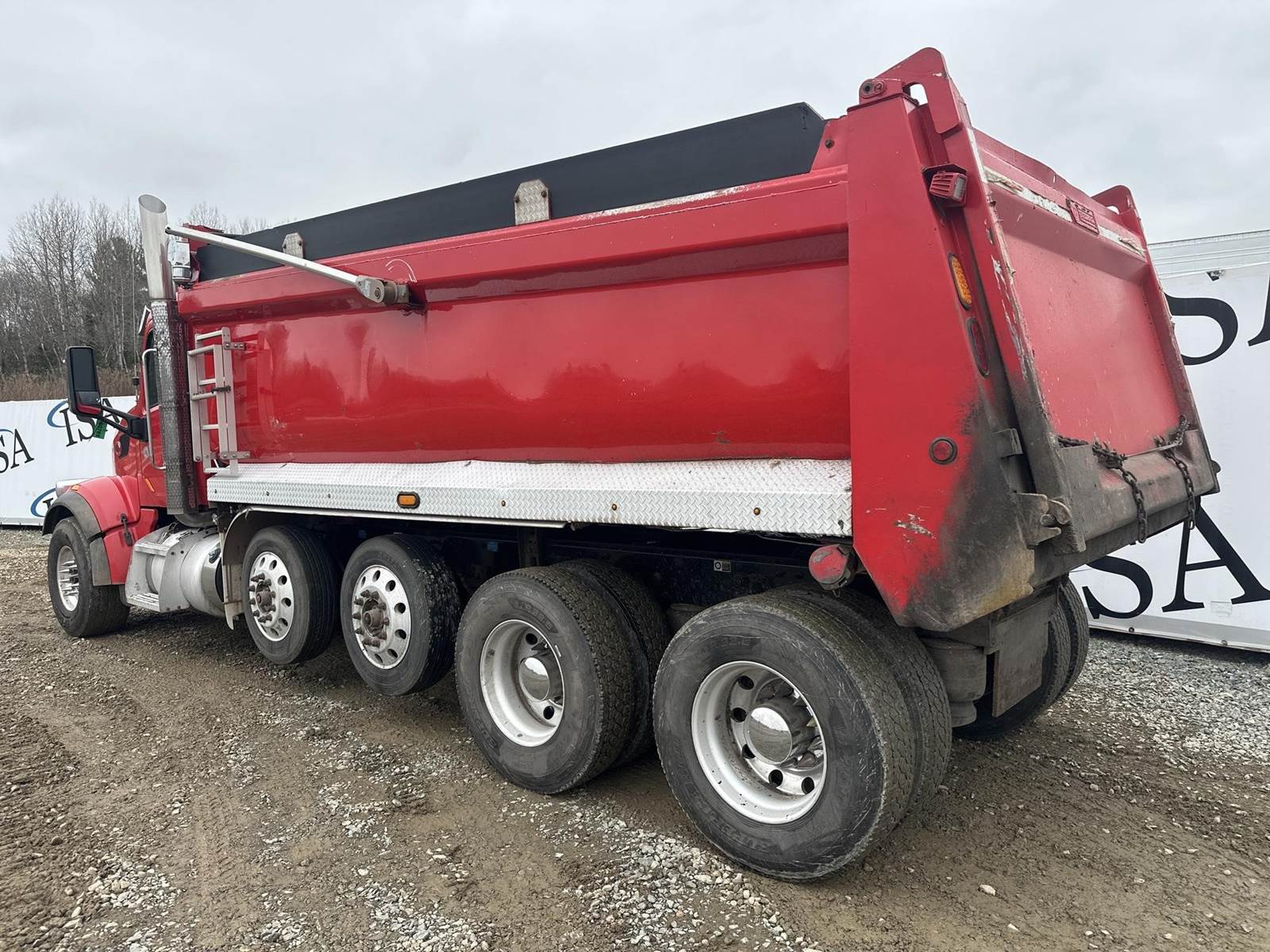 18 Speed Eaton Fuller Manual Transmission, PTO, Full Lockers, (2) Air Pusher Axles, 80000lb GVWR, 20000lb Front Axle, Air Ride Suspension, Approx 16' Dump Bed, Air Locking Tailgate, Electric Tarper, Heat/Ac, Am/Fm Radio, Cruise Control, Steering Wheel Controls, Power Windows, Power Locks, Power Mirrors, Heated Mirrors, Air Ride Driver Seat, 11R22.5 Rear Tires, 255/70R22.5 Pusher Tires, 425/65R22.5 Front Tires