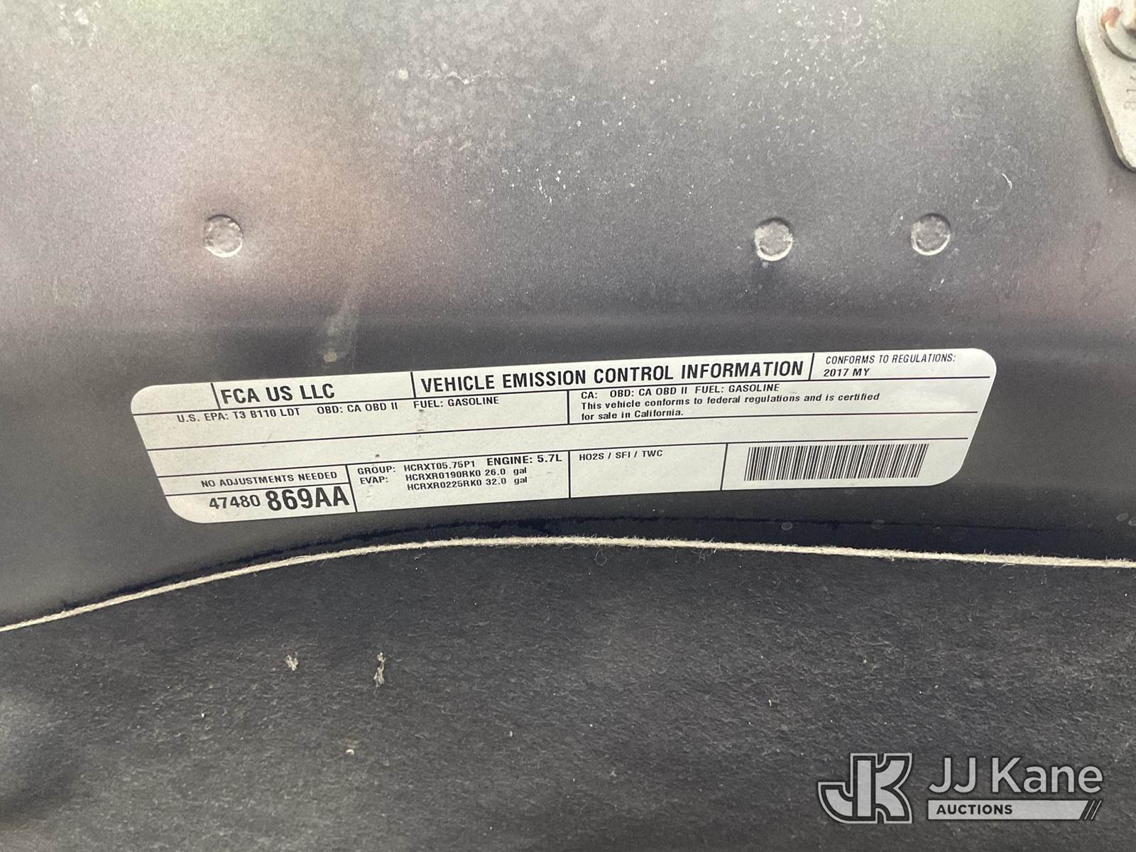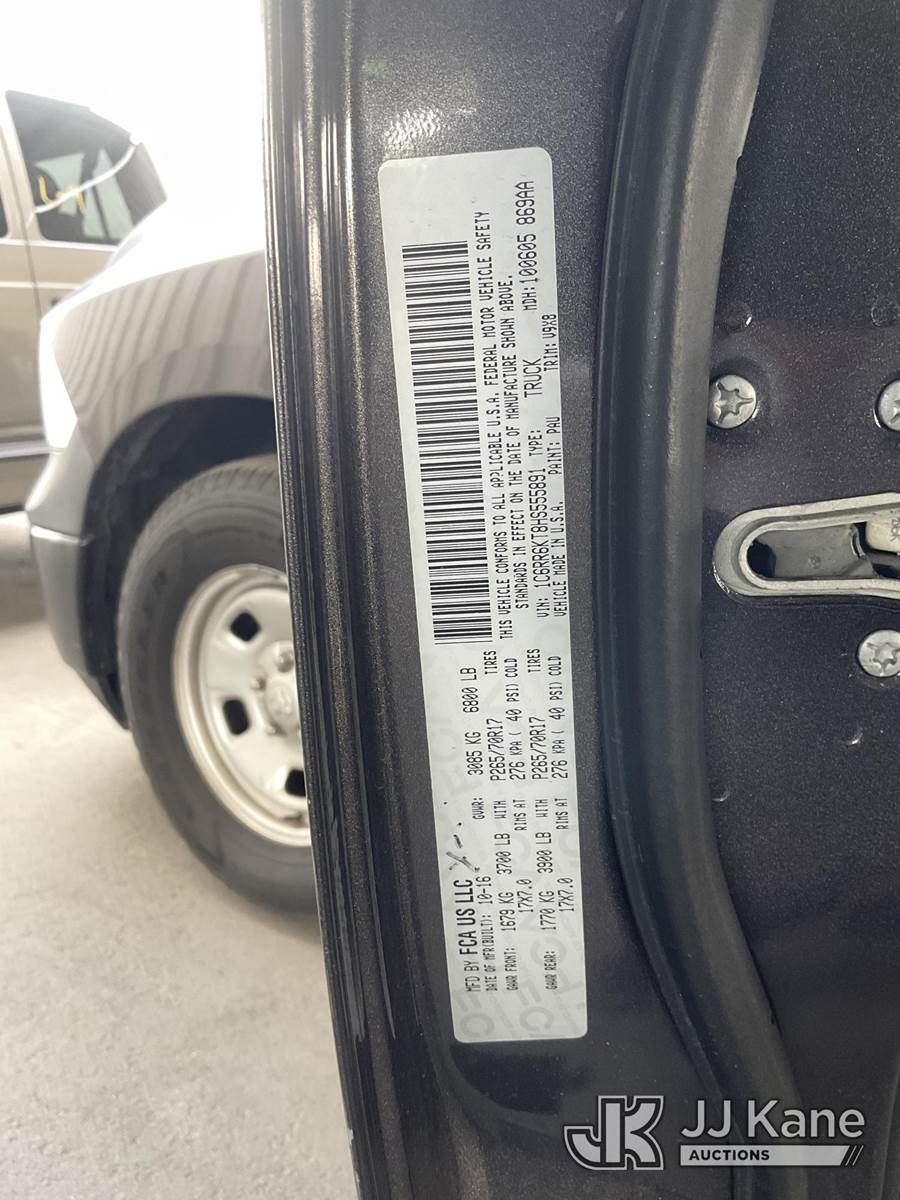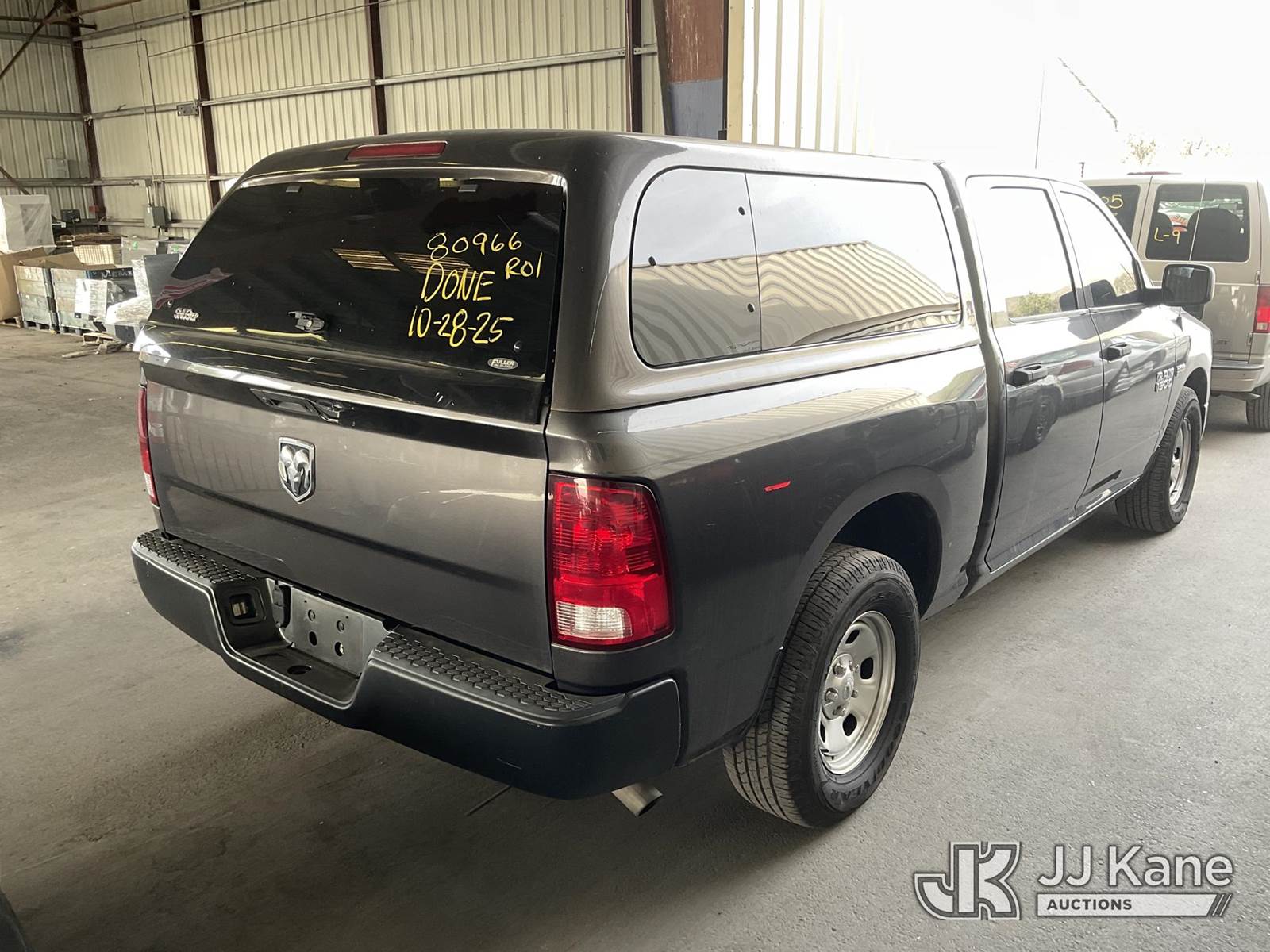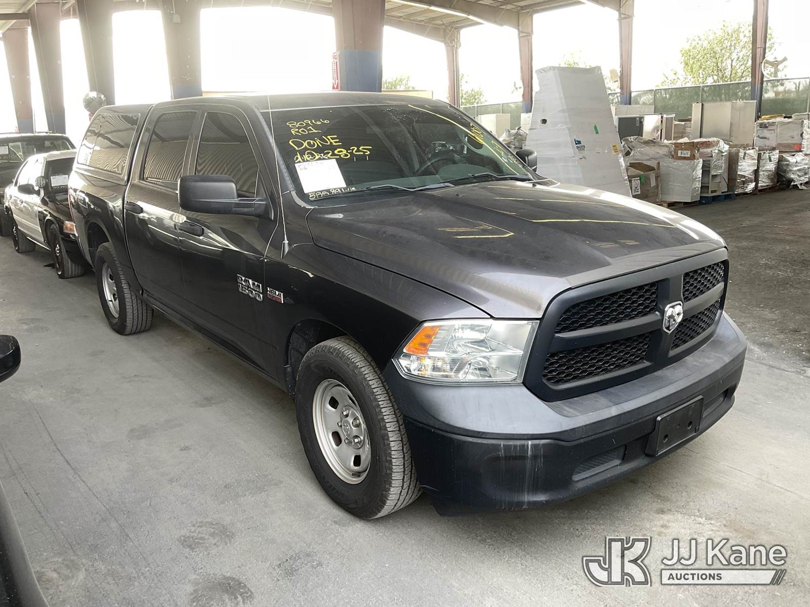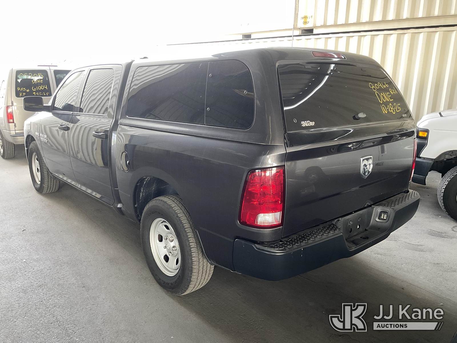 2017 RAM 1500 Crew-Cab Pickup Truck, 5.7L V8 OHV 16V Gas, RWD, 8-Speed Automatic, A/C, with Camper Shell, (122,708 miles) (Runs & Moves) (Check Engine Light On, Missing Catalytic Converter, No Horn) (Vehicle previously used with a ‘cold plate’ or protected record registration. Due to the prior status, VIN may not yet appear in NMVTIS, which could affect DMV title/registration processing. Buyer acknowledges and accepts this) (Bidding Restricted to Licensed Vehicle Dealers Only), This is a Titled Item NOTE: This unit is being sold AS IS/WHERE IS via Timed Auction and is located in Jurupa Valley, CA. Inspection & preview days for this unit are the 2 business days prior to the first day of items closing for this auction, item is located at 4510 Muth Way Jurupa Valley, CA 92509 and hours of operations are 8a-4p. For pre-sale questions, please contact please contact Office Staff @ (310) 353-7140. Dealer License Number 45696. (Buyer is responsible for removal. Assistance by consignor or JJ Kane Auctions is not assured.)