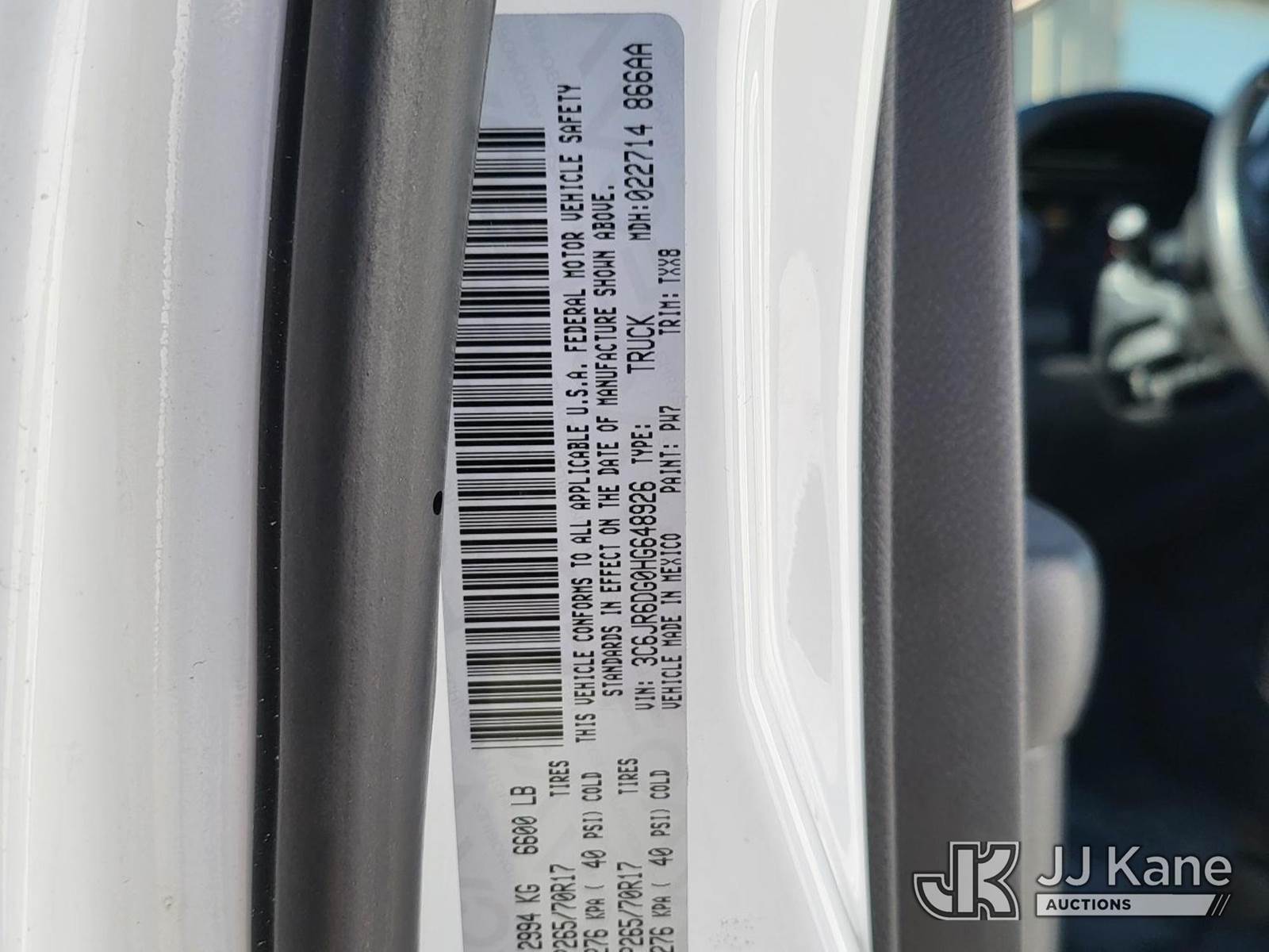 2017 RAM 1500 Tradesman Regular Cab LWB 2WD Pickup Truck, 3.6L V6 DOHC 24V FFV 8-Speed Automatic, RWD, A/C, with cap, (51,534 miles) (Runs & Moves) This is a Titled Item NOTE: This unit is being sold AS IS/WHERE IS via Timed Auction and is located in Waverly, NE. For more information contact Austin Scott @ (816) 205-2291. Removal by appointment only, Buyer/Hauler must present copy of paid invoice or release form upon arrival. Purchaser acknowledges ALL lots must be removed within 10 business days of Auction, or a storage fee may be incurred. For load out and pick up information, please reference the release form sent out after purchase. (Buyer is responsible for removal. Assistance by consignor or JJ Kane Auctions is not assured). (Buyer is responsible for removal. Assistance by consignor or JJ Kane Auctions is not assured.)