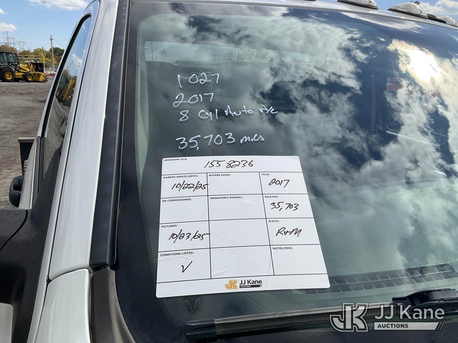 2017 RAM 5500 2WD Cab & Chassis, 8-cyl gas, Auto, A/C, with Under Hood Air Compressor, (35,703 miles) (Runs & Moves, Front Bumper Damage) This is a Titled Item NOTE: This unit is being sold AS IS/WHERE IS via Timed Auction and is located in Plymouth Meeting, PA. Inspection & preview days for this unit are the 2 business days prior to the first day of items closing for this auction, item is located at 1402 Conshohocken Rd Plymouth Meeting, PA 19462 and hours of operations are 8a-4p. For pre-sale questions, please contact Bruce Thomas at bruce.thomas.jr@jjkane.com. REMOVAL: 10 days after the sale, Wednesday thru Friday 10 days (Excluding Saturday & Sunday. Excluding Holidays, Yard is closed Weekends) All items must be removed by the 10th day or a storage fee of $25 per item /per day will be applied. (Buyer is responsible for removal. Assistance by consignor or JJ Kane Auctioneers is not assured.)