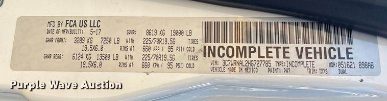 VIN: 3C7WRNAL2HG727785