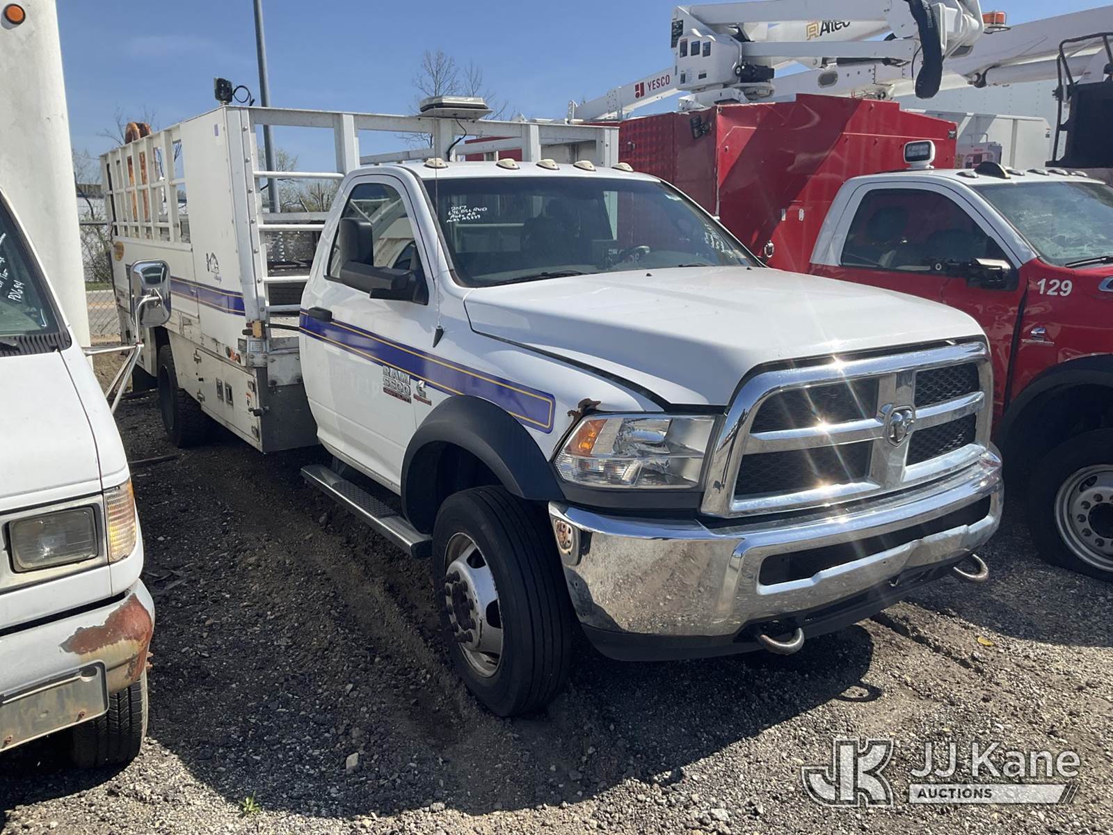 2017 RAM 5500 Flatbed Truck, 6.7L Diesel Auto, A/C, with Liftgate, Stake Sides, (169,639 miles) (Not Running, Condition Unknown) (Body Damage, Must Tow, Buyer Must Load) This is a Titled Item NOTE: This unit is being sold AS IS/WHERE IS via Timed Auction and is located in Plymouth Meeting, PA. Inspection & preview days for this unit are the 2 business days prior to the first day of items closing for this auction, item is located at 1402 Conshohocken Rd Plymouth Meeting, PA 19462 and hours of operations are 8a-4p. For pre-sale questions, please contact Bruce Thomas @ (267) 887-0392 or bruce.thomas.jr@jjkane.com. (Buyer is responsible for removal. Assistance by consignor or JJ Kane Auctions is not assured.)
