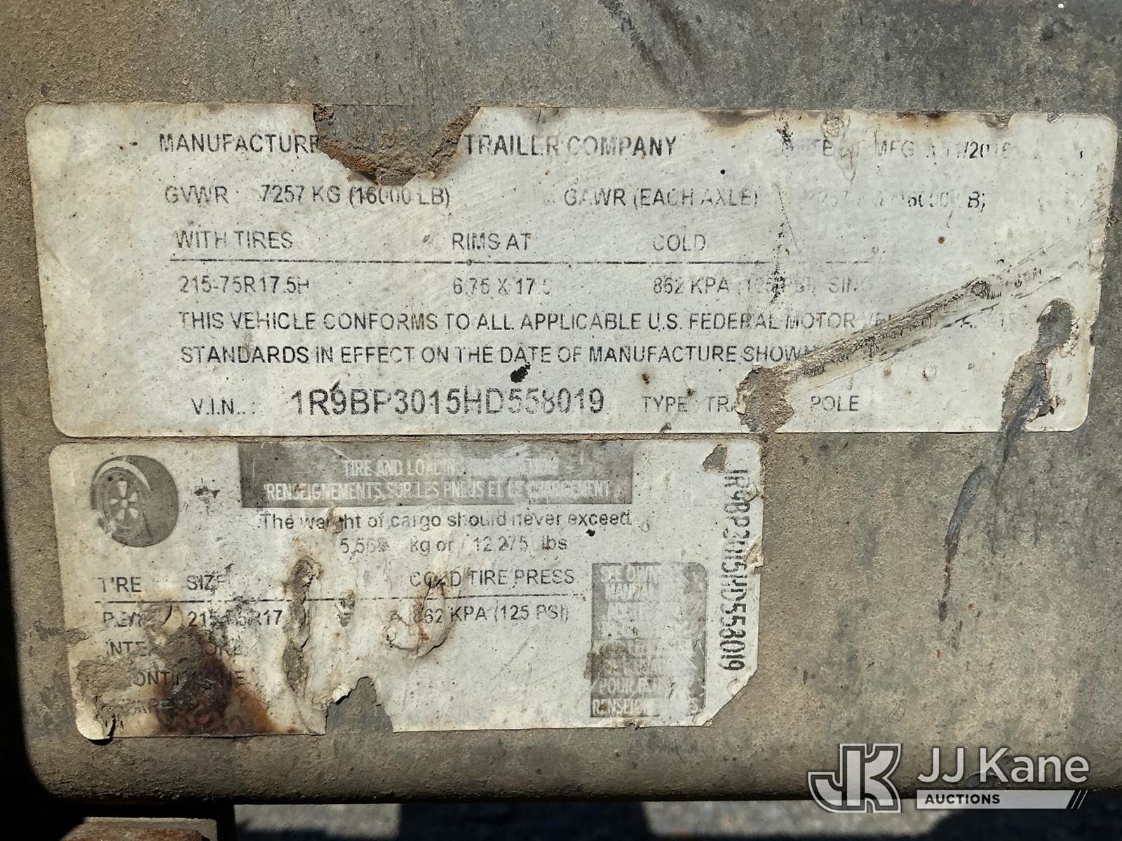 2017 Rice S/A Galvanized Pole Trailer, s/n 1R9BP3015HD558019, (No Title) NOTE: This unit is being sold AS IS/WHERE IS via Timed Auction and is located in China Grove, NC. Inspection & preview days for this unit are the 2 business days prior to the first day of items closing for this auction, item is located at 820 E NC Hwy 152 China Grove, NC 28023 and hours of operations are 8a-4p. For pre-sale questions, please contact Office Staff @ (704) 674-1113. (Buyer is responsible for removal. Assistance by consignor or JJ Kane Auctions is not assured.)