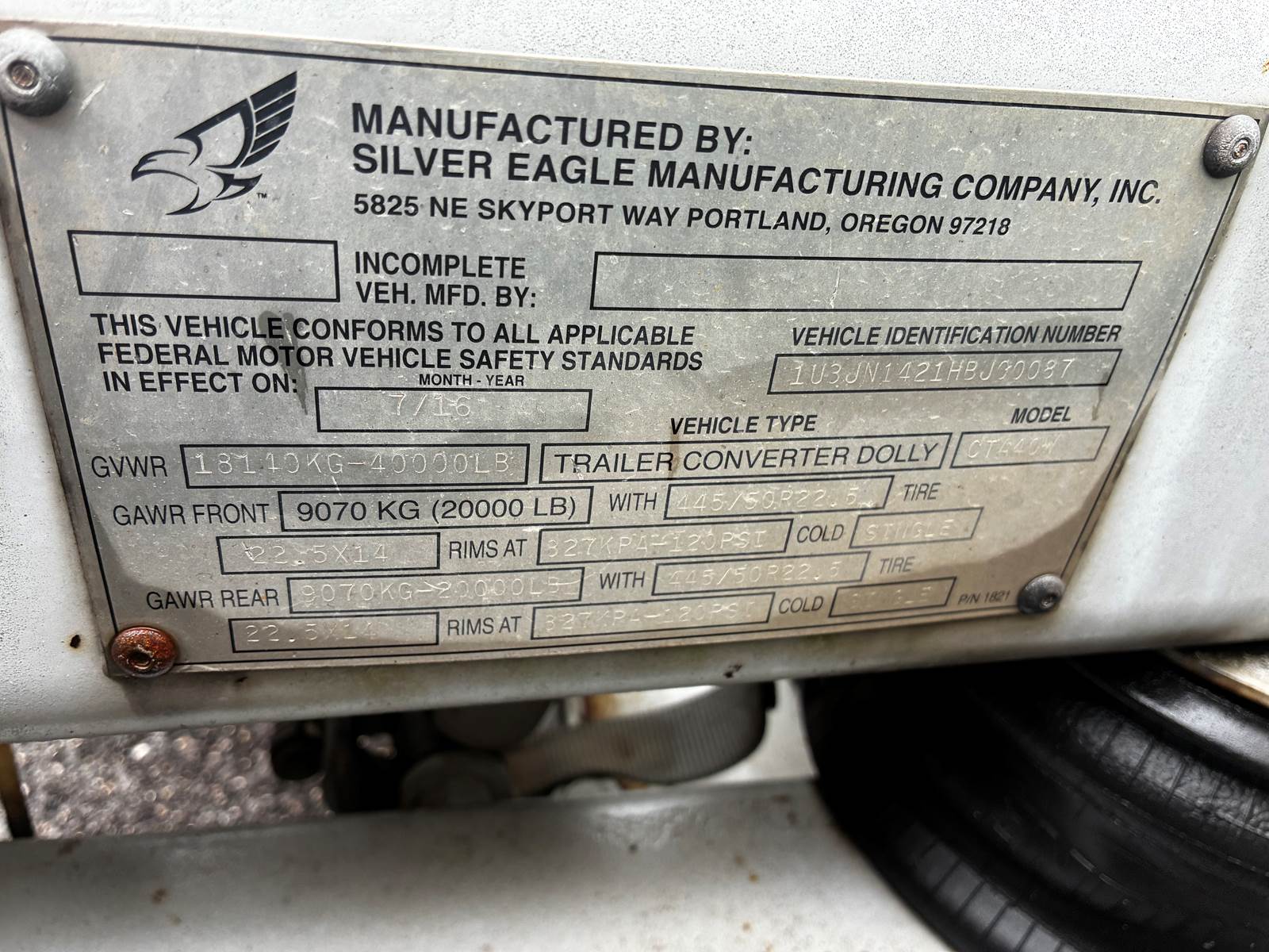 2017 Silver Eagle Dolly Trailer