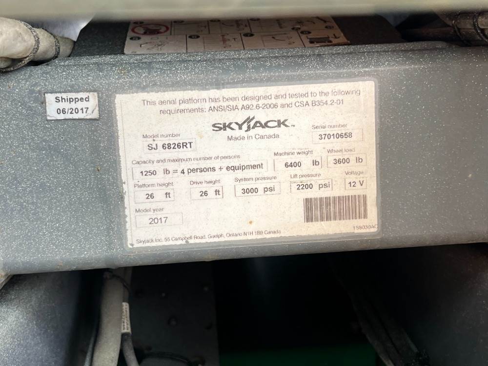 2017 SKYJACK SJ6826RT ROUGH TERRAIN SCISSORLIFT